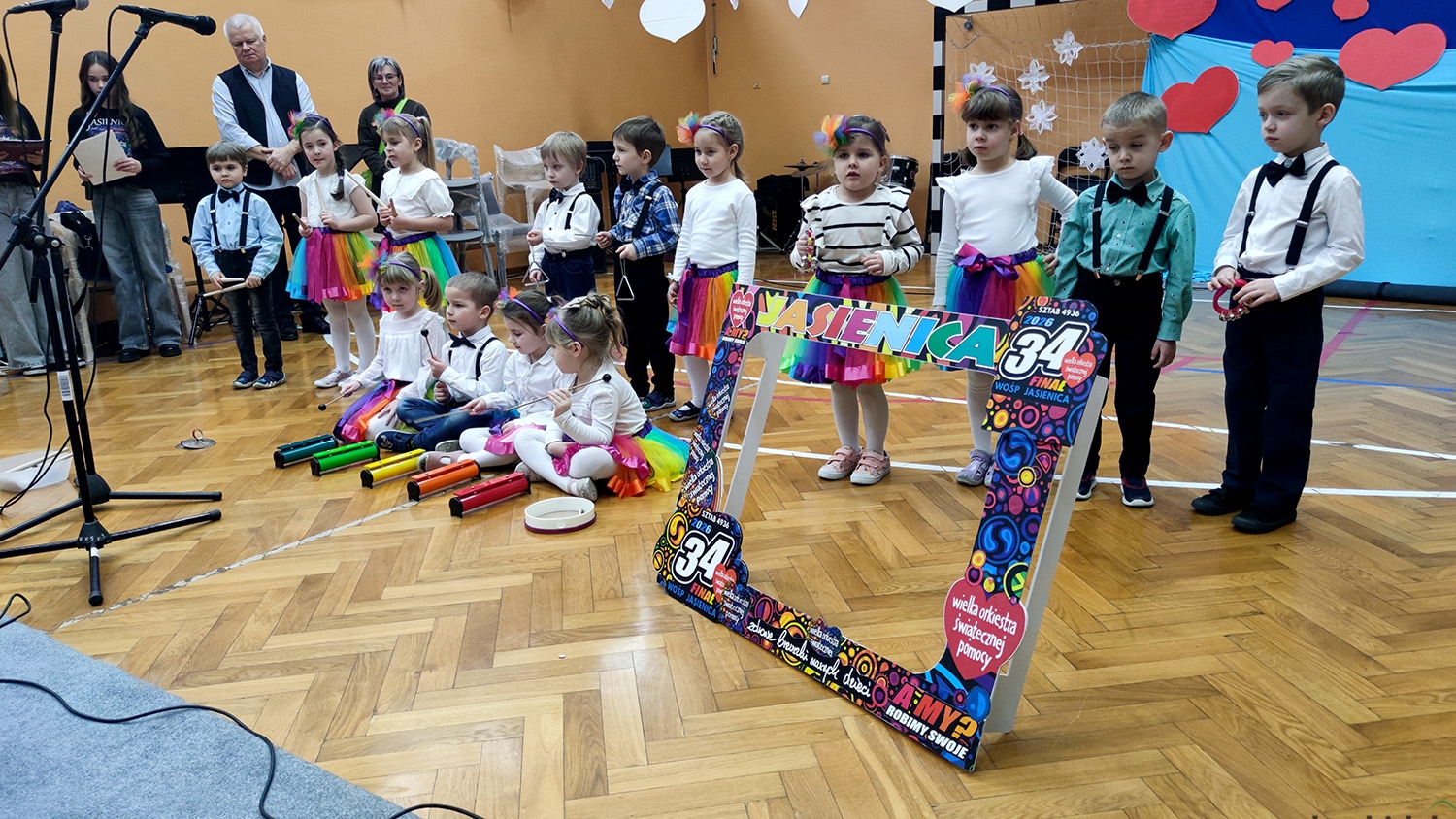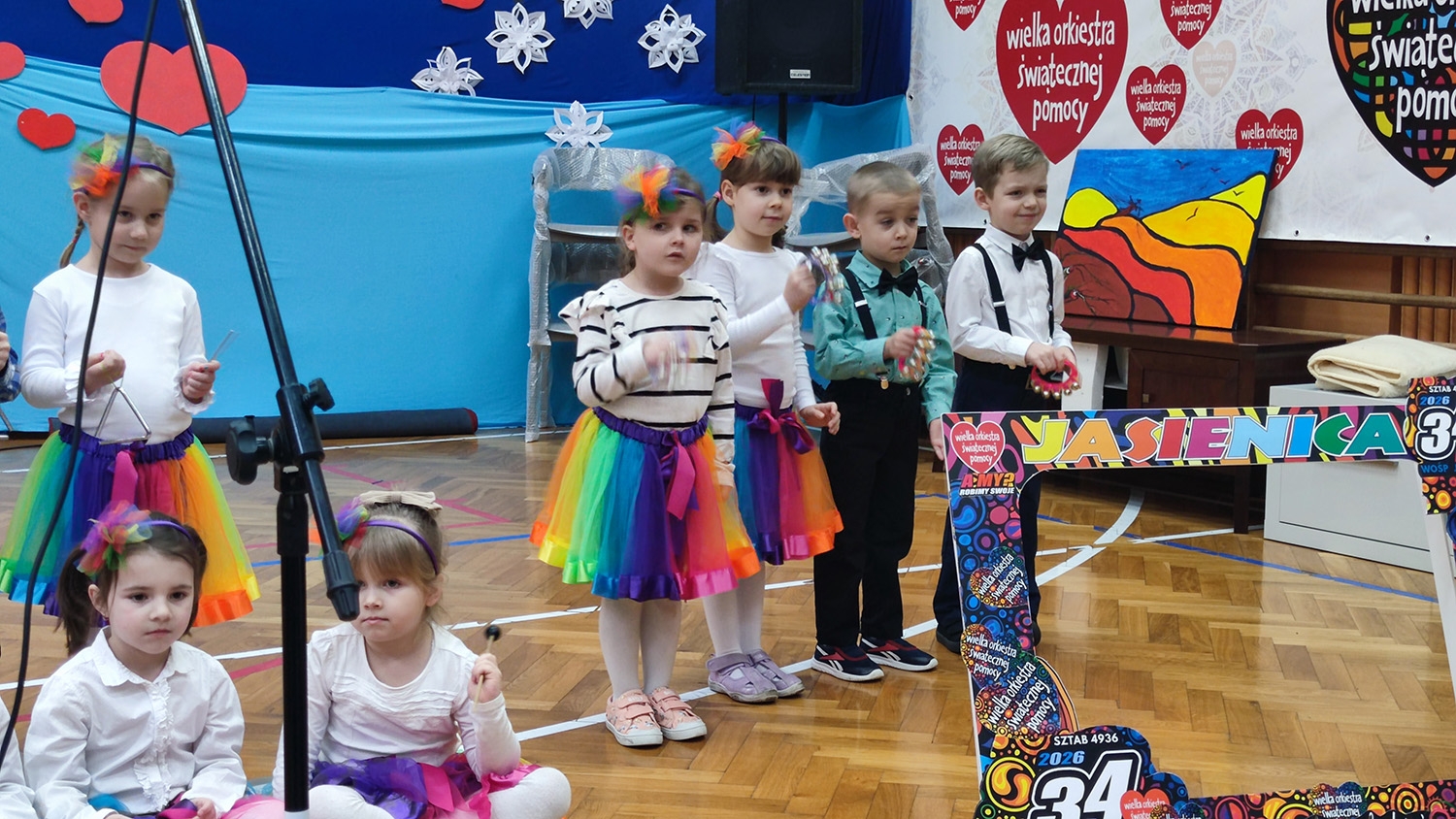 – Siema! Gorąco witamy Was na 34 finale Wielkiej Orkiestry Świątecznej Pomocy, który już po raz 24 organizuje nasza szkoła – entuzjastycznie przywitały zebranych gości uczennice Zespołu Szkolno-Przedszkolnego w Jasienicy. To tutaj począwszy od godziny 14.00, odbywały się występy dzieci, które zachwyciły publiczność swoimi tańcami, piosenkami i przedstawieniami. Ciepłe oklaski oraz entuzjastyczne reakcje były najlepszym dowodem uznania dla młodych artystów, a ich rodzice byli pełni dumy. Wystąpił też, między innymi, jasienicki Big Band prowadzony przez Stanisława Urbana, co z pewnością dodało uroku całej imprezie.