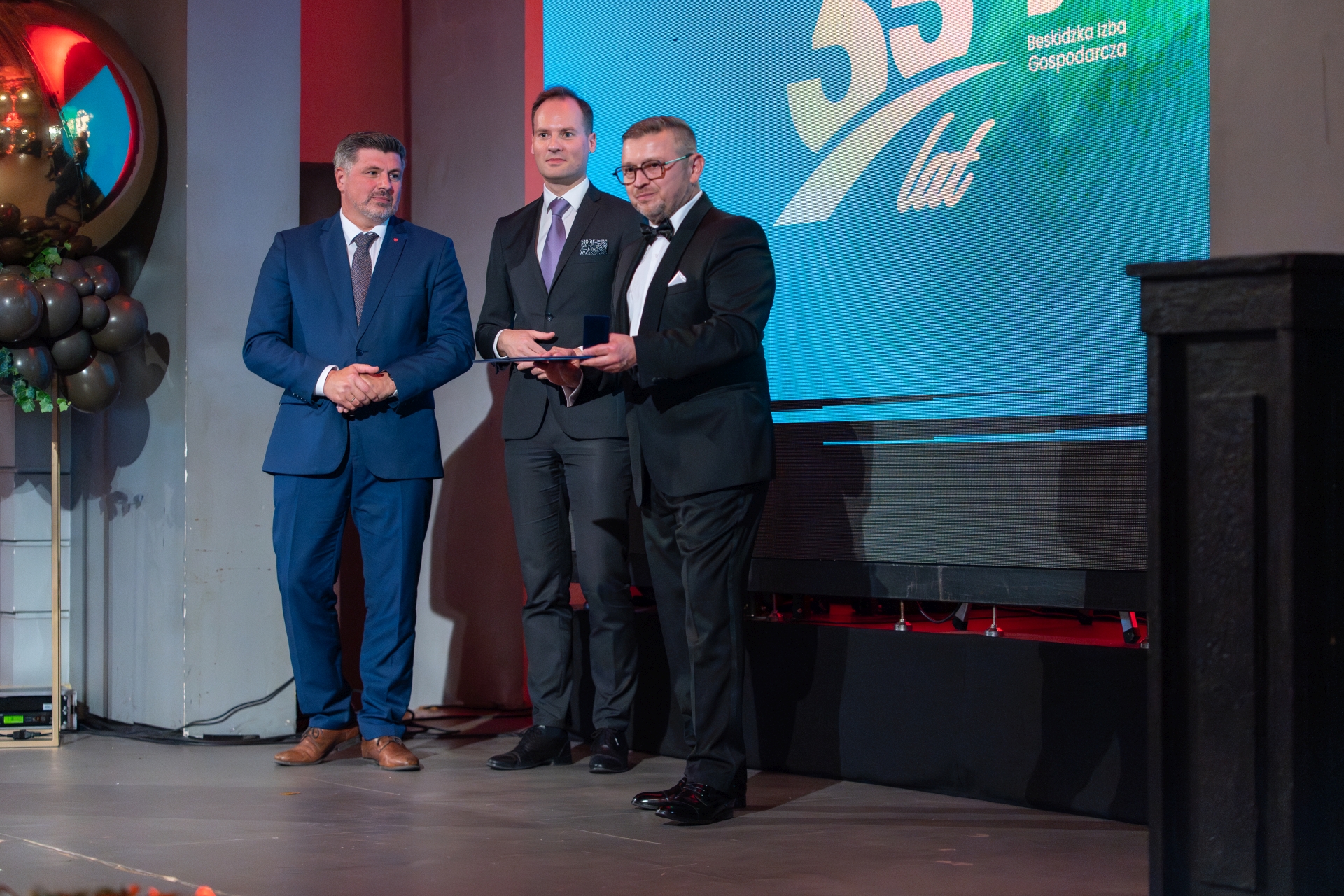 Po chwili prestiżowe laury wręczali Jarosław Klimaszewski, Maciej Jeleń oraz starosta bielski Andrzej Płonka. Laureatem Nagrody Specjalnej w konkursie Firma Roku 2025 – Złotego Dedala dla najlepszej firmy subregionu południowego – została, obecna na rynku od 35 lat, spółka Bogmar BB, której misją jest dostarczanie najwyższej jakości artykułów BHP i MRO opartych na rozwiązaniach vendingu przemysłowego oraz produkcji odzieży mundurowej, ochronnej i roboczej.