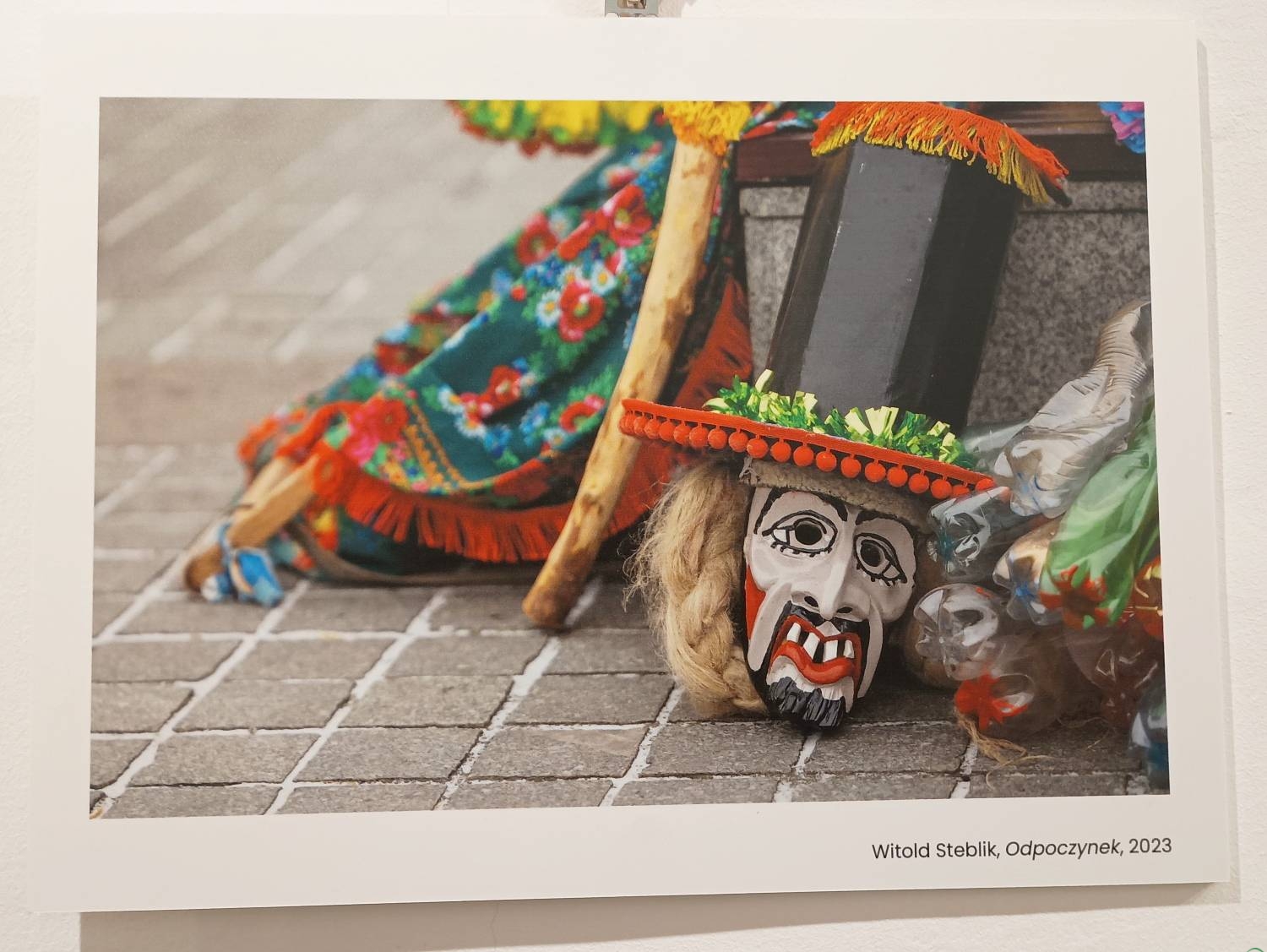 Ekspozycja nosi tytuł „50 kadrów na 50 lat” i prezentowana jest w kameralnej Galerii w Rogu. To efekt konkursu fotograficznego, który placówka ogłosiła w ubiegłym roku z okazji 50-lecia istnienia. Na pracach laureatów oglądać można uczestników ubiegłych edycji Tygodnia Kultury Beskidzkiej – zarówno na scenie, jak i poza nią. Są zatem piękne zdjęcia Witolda Steblika, na których uchwycił on tancerza w akrobatycznym „locie” podczas występu oraz roześmiane dzieci wykonujące choreografię podczas Dnia Folkloru Dziecięcego w Żywcu. Są też ujmujące fotografie Justyny Dutkowiak przedstawiające dziecko w chuście góralskiej śpiące na ramieniu mężczyzny albo członków zespołu odpoczywających przed sklepem z wyrobami góralskimi. Jest też sporo barwnych zdjęć uwieczniających sympatyczne scenki z Żywieckich Godów – portrety kolędników w maskach czy pochody przebierańców.