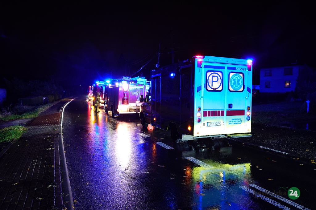 Zgłoszenie pożaru wpłynęło z WCPR o godz. 1.18. – Zastępy zostały wysłane do pożaru w budynku jednorodzinnym. Po dojeździe na miejsce zdarzenia teren zabezpieczono. Policjanci obecni na miejscu przekazali nam informację, że z pomieszczenia objętego pożarem na parterze budynku wyciągnięty został mężczyzna. Pomimo że to pomieszczenie było zadymione, a mężczyzna leżał na podłodze, to policjantom udało się go wyciągnąć. Poszkodowany był silnie podtruty gazami pożarowymi, na głowie widoczne ślady otarcia. Udzielono mu kwalifikowanej pomocy przedmedycznej. Po przyjeździe na miejsce ambulansu poszkodowany został przekazany pod opiekę zespołu ratownictwa medycznego. W budynku przebywały jeszcze cztery osoby, w tym małe dziecko, na szczęście ogień nie przeniósł się do tego pomieszczenia. Nasze działania polegały na podaniu prądu gaśniczego i ugaszeniu pożaru. Policjantom, pomimo iż byli w zadymionym pomieszczeniu, nic się nie stało, nie potrzebowali pomocy medycznej – powiedział nam asp. sztab. Józef Stec z Posterunku Zamiejscowego JRG2 w Czechowicach-Dziedzicach