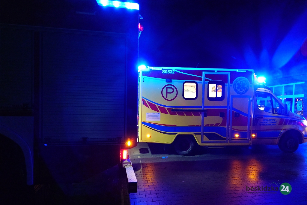 Wszystkie służby wysłano po otrzymaniu zgłoszenia pożaru budynku przy ul. Bialskiej w Bestwinie. Wskutek pożaru poparzeniu uległ mężczyzna. Na miejsce wezwano śmigłowiec LPR. Wezwanie anulowano, poszkodowanego odwieziono ambulansem.
