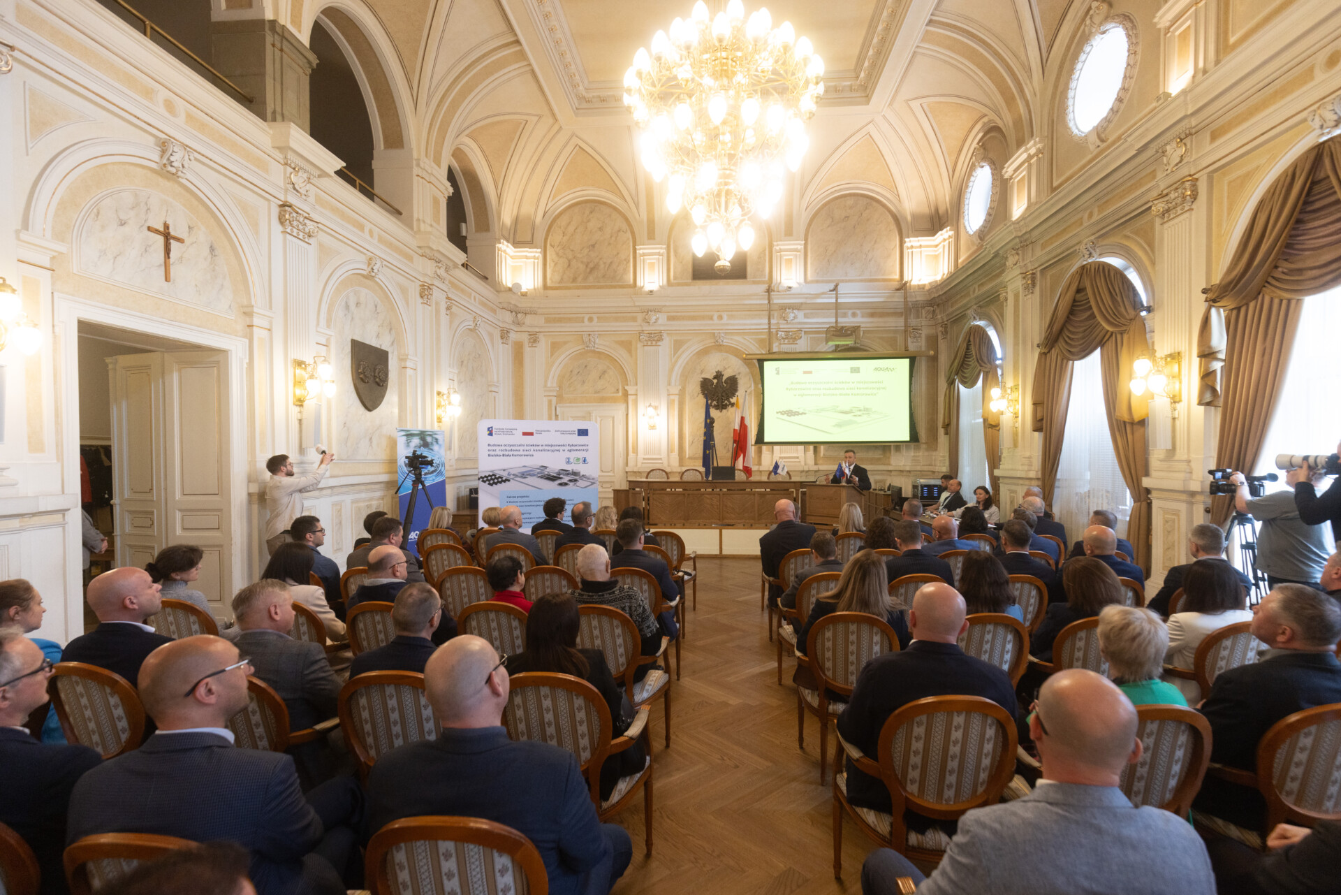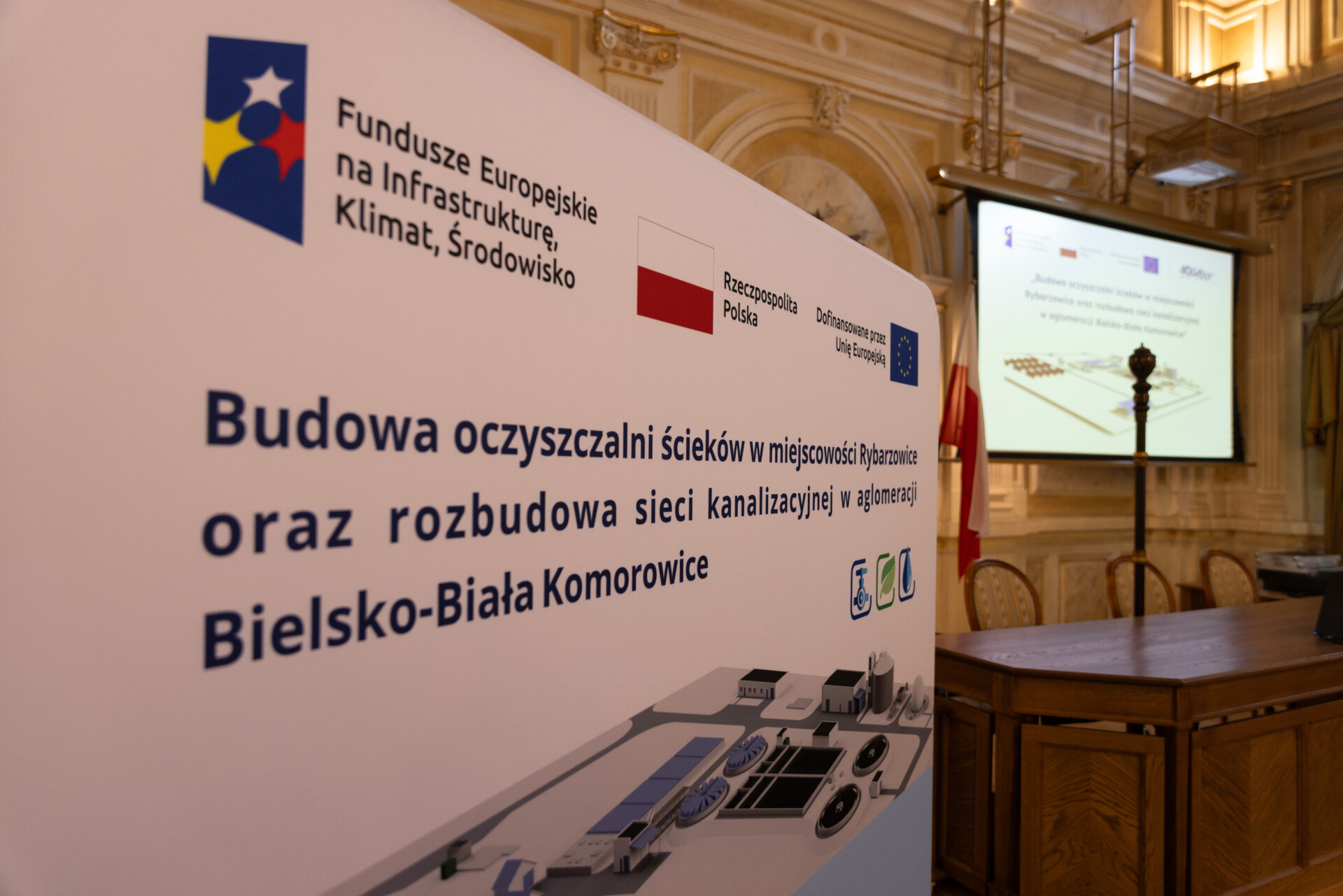 21 kwietnia w pięknej sali sesyjnej bielskiego ratusza odbyła się konferencja, podczas której zaprezentowano projekt firmy AQUA S.A. pod pełną nazwą „Budowa oczyszczalni ścieków w miejscowości Rybarzowice oraz rozbudowa sieci kanalizacyjnej w aglomeracji Bielsko-Biała Komorowice”. Uczestnikami spotkania byli przedstawiciele świata samorządu, polityki, biznesu i mediów.