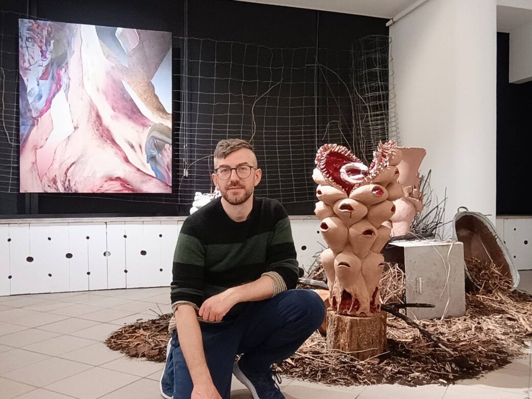 Wystawa zatytułowana jest „Ukorzenianie”, a Paweł Matyszewski to artysta z wioski Łękobudy na Podlasiu. Swoje obrazy, rzeźby i płaskorzeźby najczęściej tworzy w ogrodzie, wykorzystując przy tym materiał roślinny. – Wiele moich prac odnosi się do natury, którą w pewien sposób manipuluję – opowiada. – Tworzę obiekty trochę postapokaliptyczne, w których organizmy ulegają transformacjom. Spotkałem się ze stwierdzeniem, że moje prace są „sezonowe”, bo widać dokładnie, o jakiej porze roku zostały wykonane. Mamy bowiem na przykład bujne, pełne witalności instalacje robione w sierpniu albo dużo bardziej ubogie, robione w listopadzie.