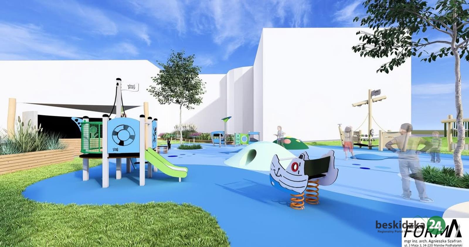 Jak informuje burmistrz Makowa Podhalańskiego Michał Surmiak umowa na wykonanie placu zabaw podpisana została z firmą Przedsiębiorstwo Robót Inżynieryjnych DUDA Grażyna Duda. Koszt inwestycji, która ma powstać do końca tego roku, wyniesie 503 441,24 zł.
