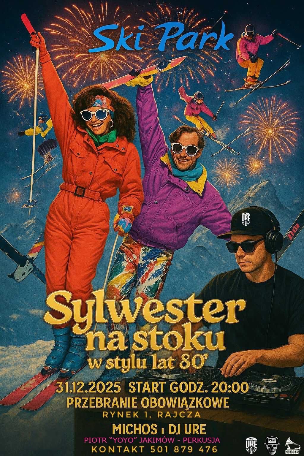 Motyw przewodni: stroje narciarskie z lat 80. Kolorowe kurtki, retro czapki i gogle mile widziane – im bardziej szalony strój, tym lepiej!