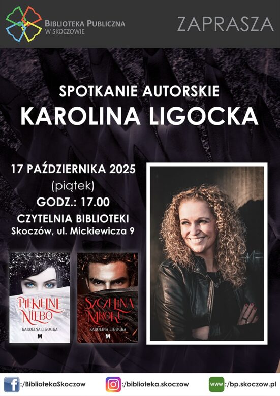 W piątek, 17 października, fanów dobrych książek czeka prawdziwa gratka. W Bibliotece Publicznej w Skoczowie odbędzie się spotkanie autorskie z pisarką Karoliną Ligocką. – Będzie czas na ciekawostki, pytania i interesujące rozmowy – zapowiadają bibliotekarze spod Kaplicówki.