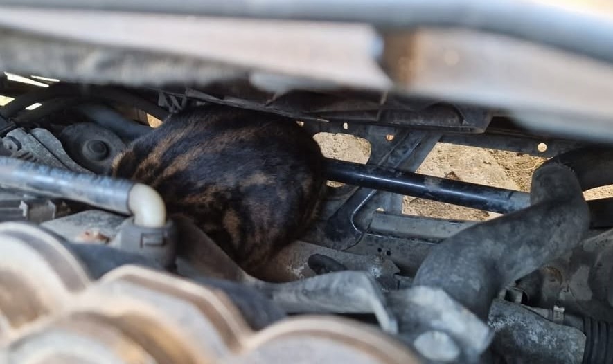 Zwierzę skryło się pod maską jednego z pojazdów zaparkowanych na Osiedlu Beskidzkim. Potrzeba było pół godziny, by je złapać i przekazać właścicielce.