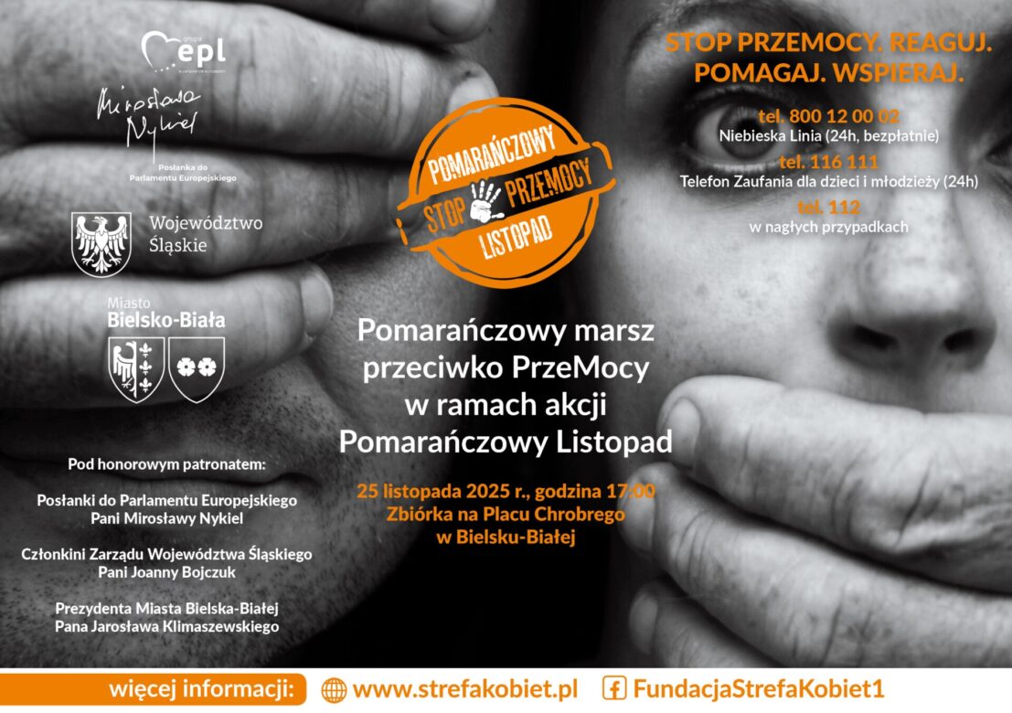 Listopad w Bielsku-Białej znów stanie się miesiącem solidarności, refleksji i wsparcia. Rusza kolejna edycja kampanii „Pomarańczowy Listopad”, której celem jest zwrócenie uwagi na problem przemocy – w rodzinie, w relacjach i w przestrzeni publicznej. Wydarzenia potrwają przez cały miesiąc, a ich kulminacją będzie „Pomarańczowy Marsz przeciwko PrzeMoCy”, zaplanowany na 25 listopada o godz. 17.00 na placu Chrobrego.