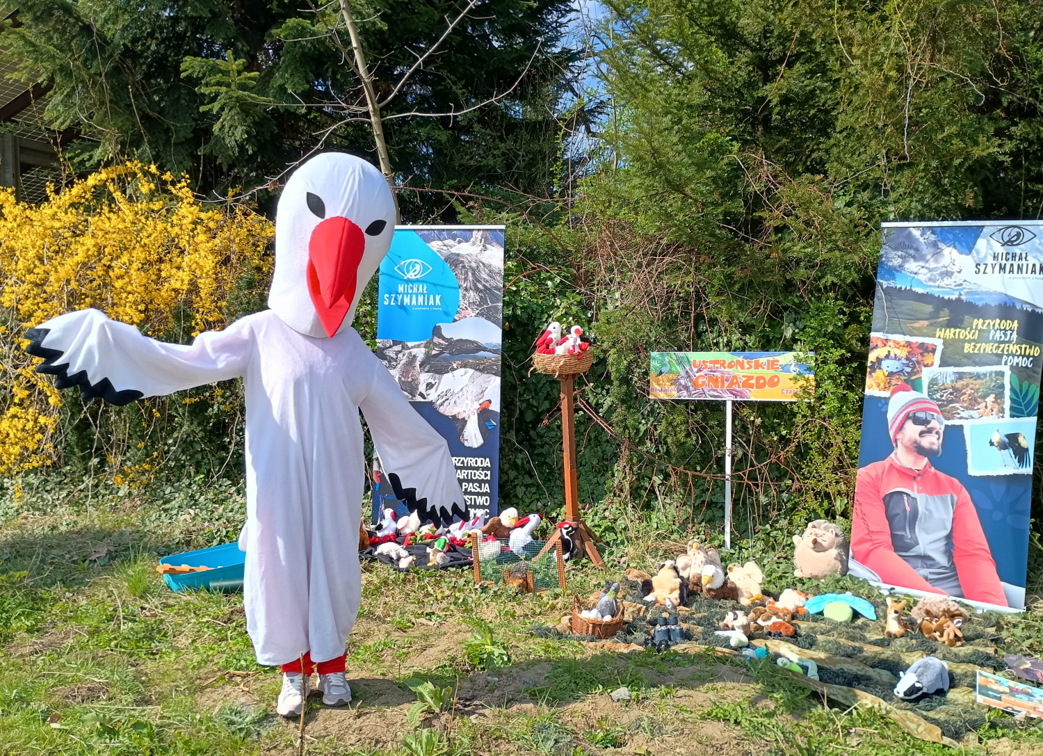 W ubiegłym roku powstał również projekt „Ustrońskie Gniazdo”, którego pomysłodawcą jest Michał Szymaniak, a koordynatorem Jacek Nieurzyła z Miejskiego Domu Kultury „Prażakówka” w Ustroniu. Ideą przedsięwzięcia jest edukacja przyrodnicza i integracja. We współpracy z Prażakówką i wieloma zaangażowanymi osobami, Michał Szymaniak opowiada dzieciom w przedszkolach o życiu bocianów. – W ramach projektu powstała również piosenka o ustrońskich bocianach oraz książeczka do kolorowania – cieszy się Michał Szymaniak. – Mamy też kostium bociana. Ta żywa maskotka towarzyszyła nam już na kilku imprezach. Bocian Beskidek otwierał między innymi dożynki w Ustroniu czy Brennej.