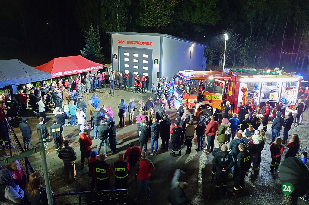 Wczoraj wieczorem strażacy z OSP Buczkowice, okoliczne jednostki OSP, zaproszeni goście i mieszkańcy Buczkowic przywitali długo oczekiwany nowy, ciężki samochód marki Scania GCBA.