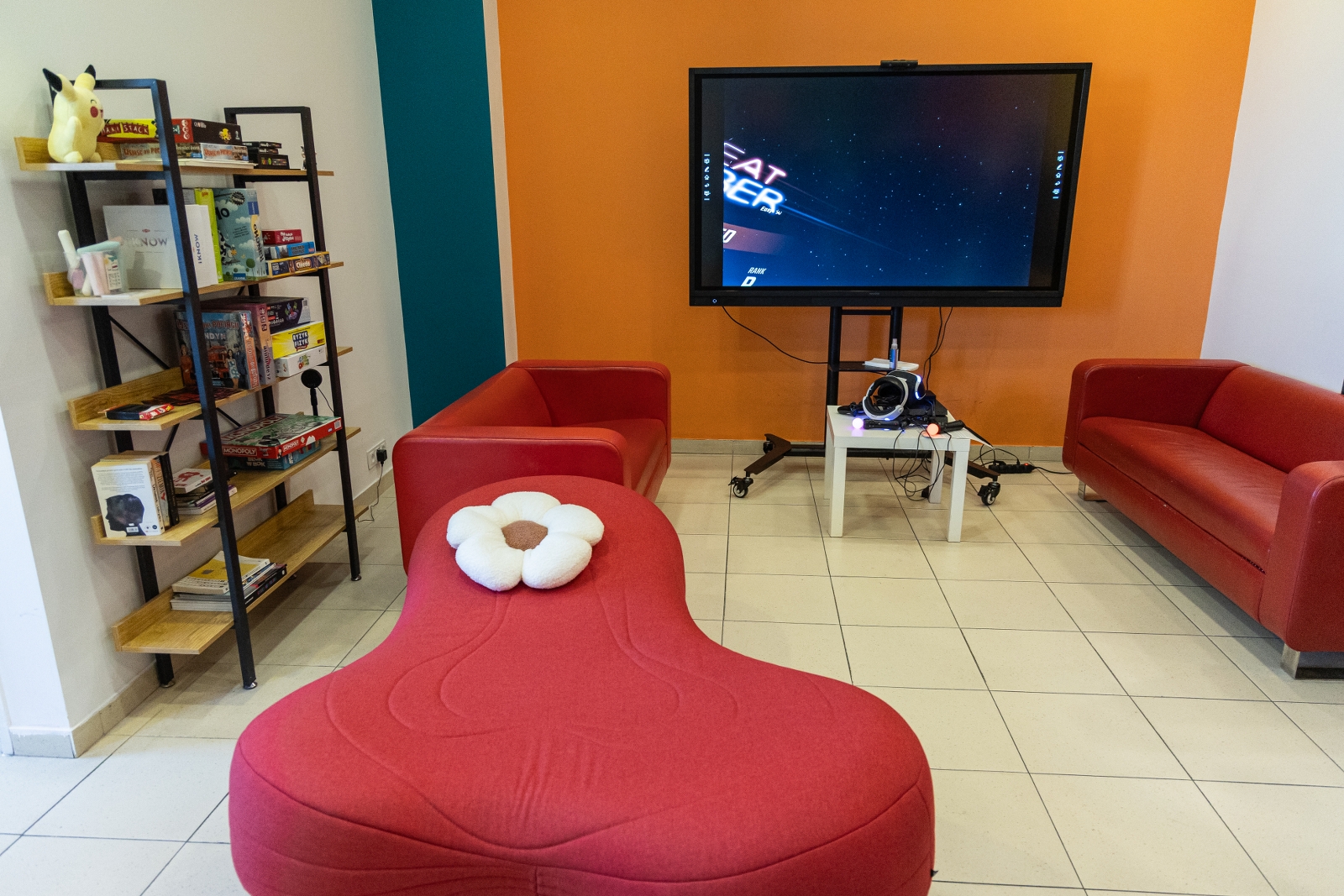 Przestrzeń została zaprojektowana tak, aby młodzież czuła się tu swobodnie, a jednocześnie bezpiecznie, spędzając czas pod opieką animatorów. W środku znajdują się wygodne pufy, kanapy i fotele, duży telewizor, książki, różnorodne gry, ekspres do kawy i wiele innych udogodnień.