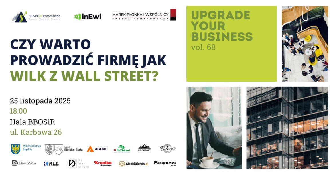 Czy inwestowanie i ryzykowne decyzje to klucz do szybkiego rozwoju? A może stabilność i kontrola finansowa to prawdziwa siła biznesu? Podczas najbliższego wydarzenia z cyklu „Upgrade Your Business” sprawdzimy, czy warto prowadzić firmę jak wilk z Wall Street — i jak znaleźć własną drogę między odwagą a rozsądkiem.