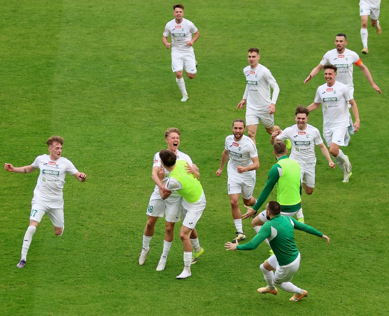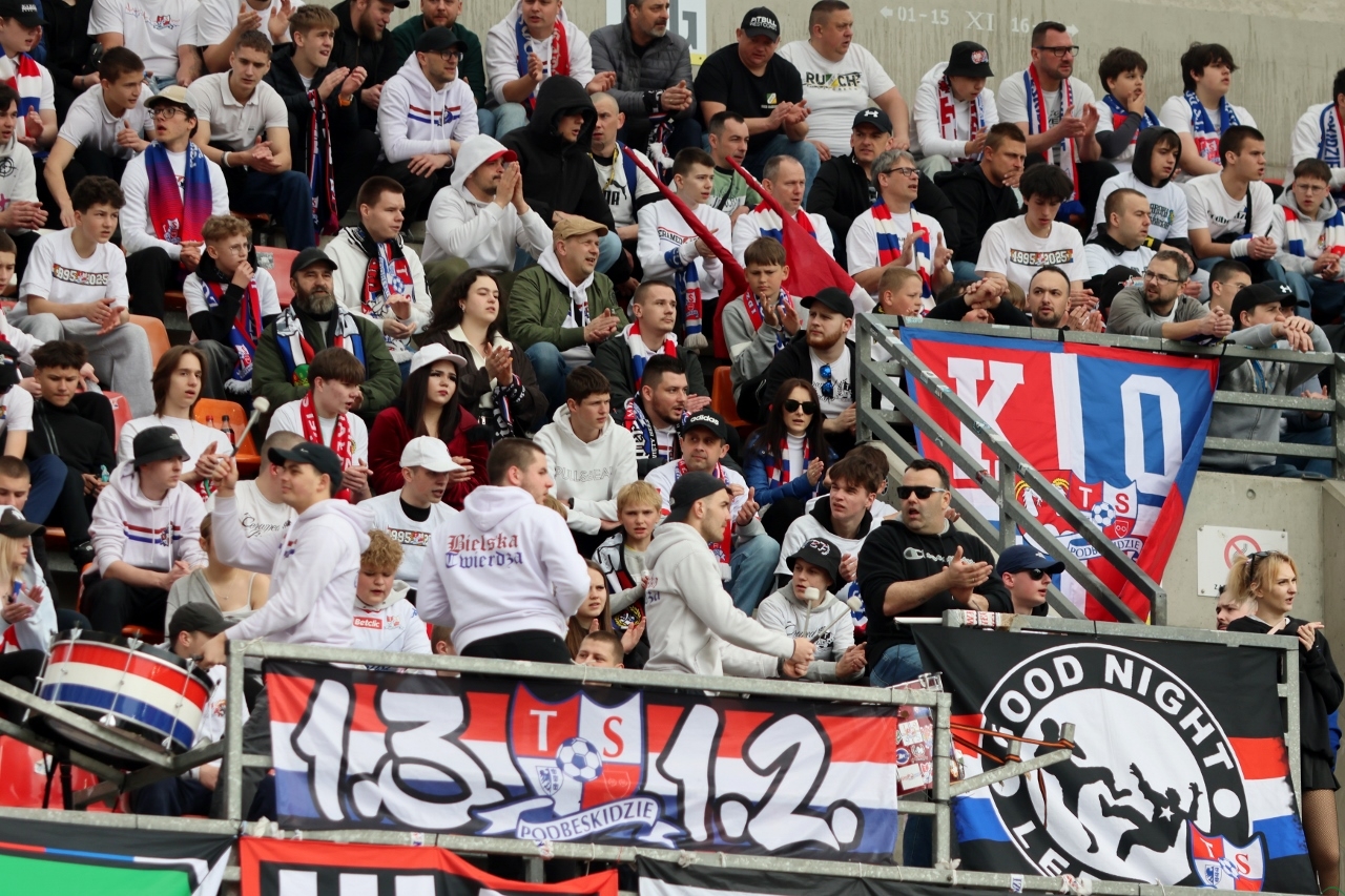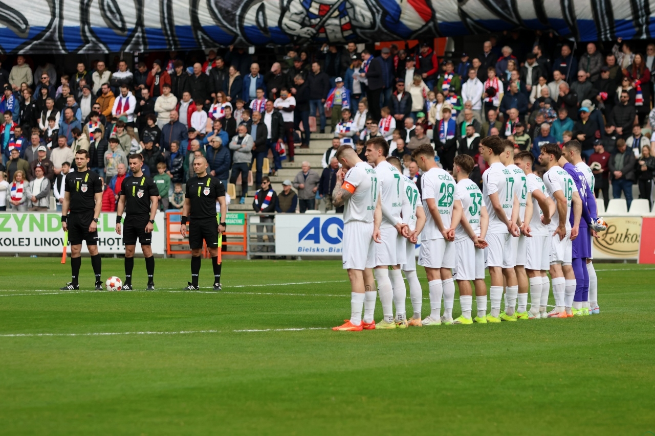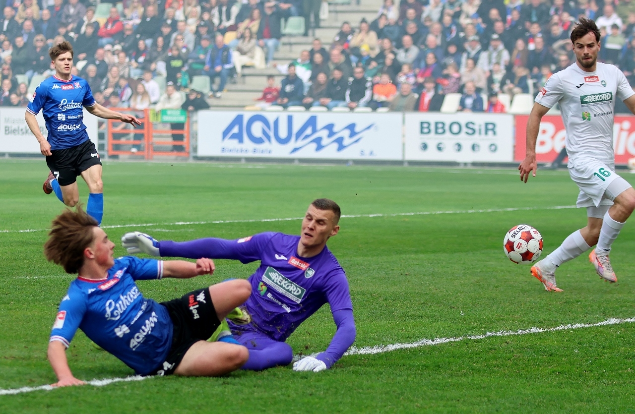 Piotr Tworek (Rekord): Myślę, że mecz trzymał w emocjach do końca. Fajnie się gra takie spotkania, a jeszcze bardziej są one radosne, gdy się je wygrywa. Bardzo się cieszymy z tej wygranej. W kontekście walki o utrzymanie ma to dla nas ogromne znaczenie, bo dopisujemy trzy punkty. Uważam, że fajne to było widowisko i tak naprawdę miasto Bielsko-Biała zdało egzamin i wygrało te derby. Pierwsza połowa była trudna, trochę nerwowa, straciliśmy w niej bramkę. W drugiej poczyniliśmy zmiany i wróciliśmy do meczu, strzelając dwa gole. Ja osobiście mam z tym stadionem fantastyczne wspomnienia, dlatego powrót tutaj jest dla mnie super sprawą. Podbeskidzie to był pierwszy klub na poziomie ekstraklasy, w którego sztabie pracowałem, więc zawsze z sentymentem będę o tym pamiętał. Trzeba podkreślić, że Wiktor Kaczorowski wybronił nam ten mecz. Wiktor staną na wysokości zadania, choć zawinił przy golu dla przeciwnika, wypluwając piłkę pod nogi Krzyśka Kolanko. Potem jednak już spisywał się bez zarzutu. Liczymy, że wygrana w derbach da nam pozytywnego kopa i impuls w kolejnych meczach. W końcu jest seria, trzeci mecz bez porażki, więc na nim możemy budować wiarę w utrzymanie i pewność siebie drużyny.