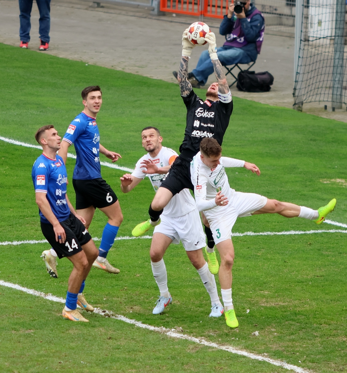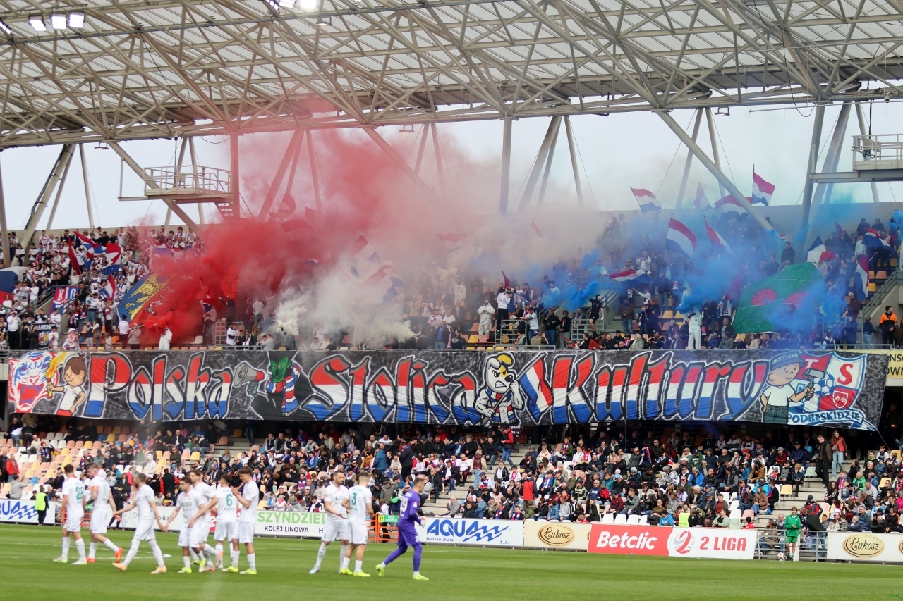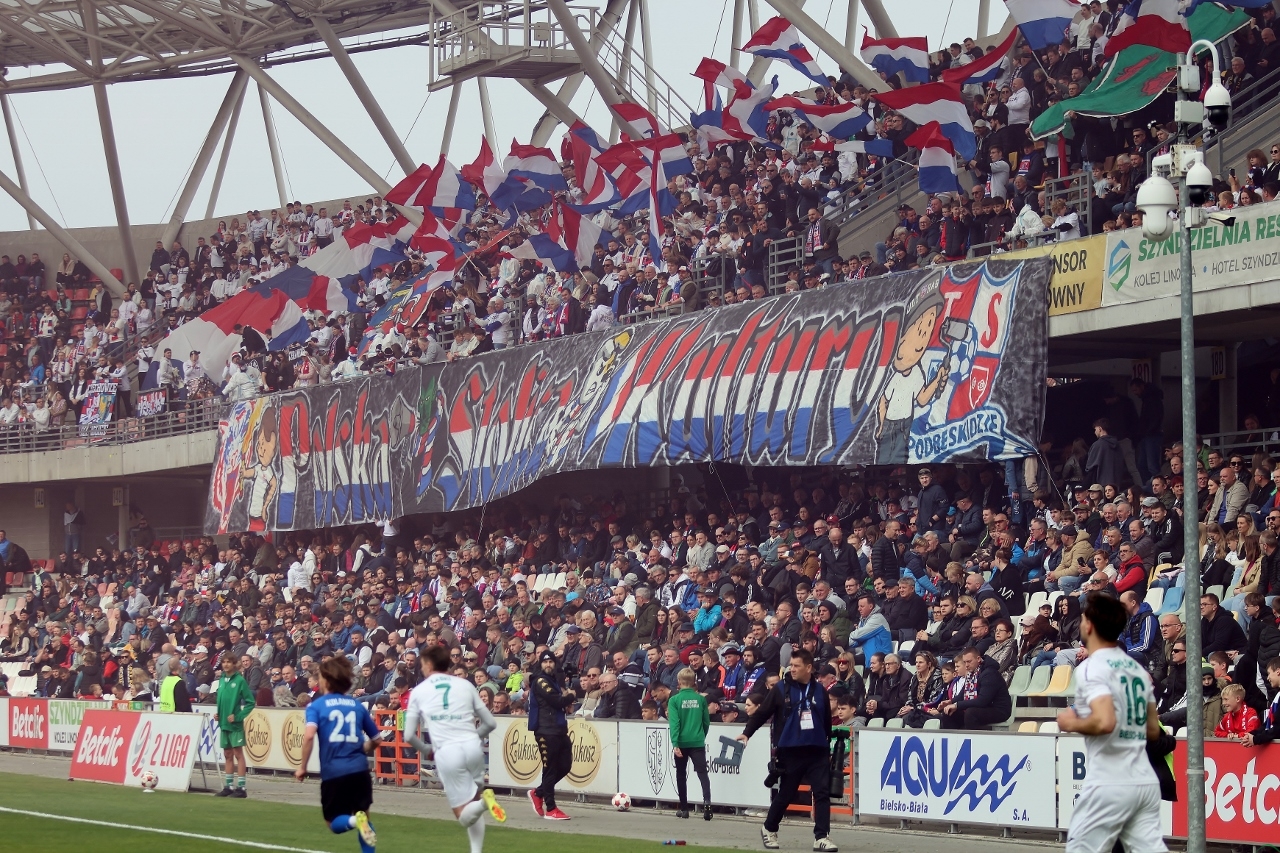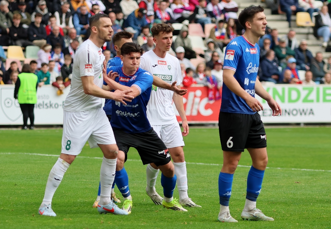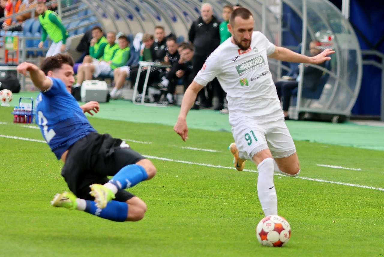 Po zmianie stron Dalibor Takáč mógł podwyższyć wynik, ale minimalnie chybił z rzutu wolnego. Nieskuteczność Podbeskidzia gospodarze ukarali w 63. minucie gry, gdy Dawid Mazurek doprowadził do remisu. Kolejne szanse Oskara Tomczyka, Lucjana Klisiewicza i dwie Marcina Urynowicza po stronie “Górali” nie przyniosły rezultatu bramkowego, bo albo zawodnicy TSP uderzali niecelnie, albo świetnie bronił Wiktor Kaczorowski. Brak skuteczności zemścił się na gościach w 85. minucie, gdy do siatki trafił Jakub Kempny, dając prowadzenie biało-zielonym. W końcówce Wojciech Słomka był bliski wyrównania, ale znów Wiktor Kaczorowskie nie dał się zaskoczyć i mecz zakończył się wygraną “Rekordzistów” 2:1.