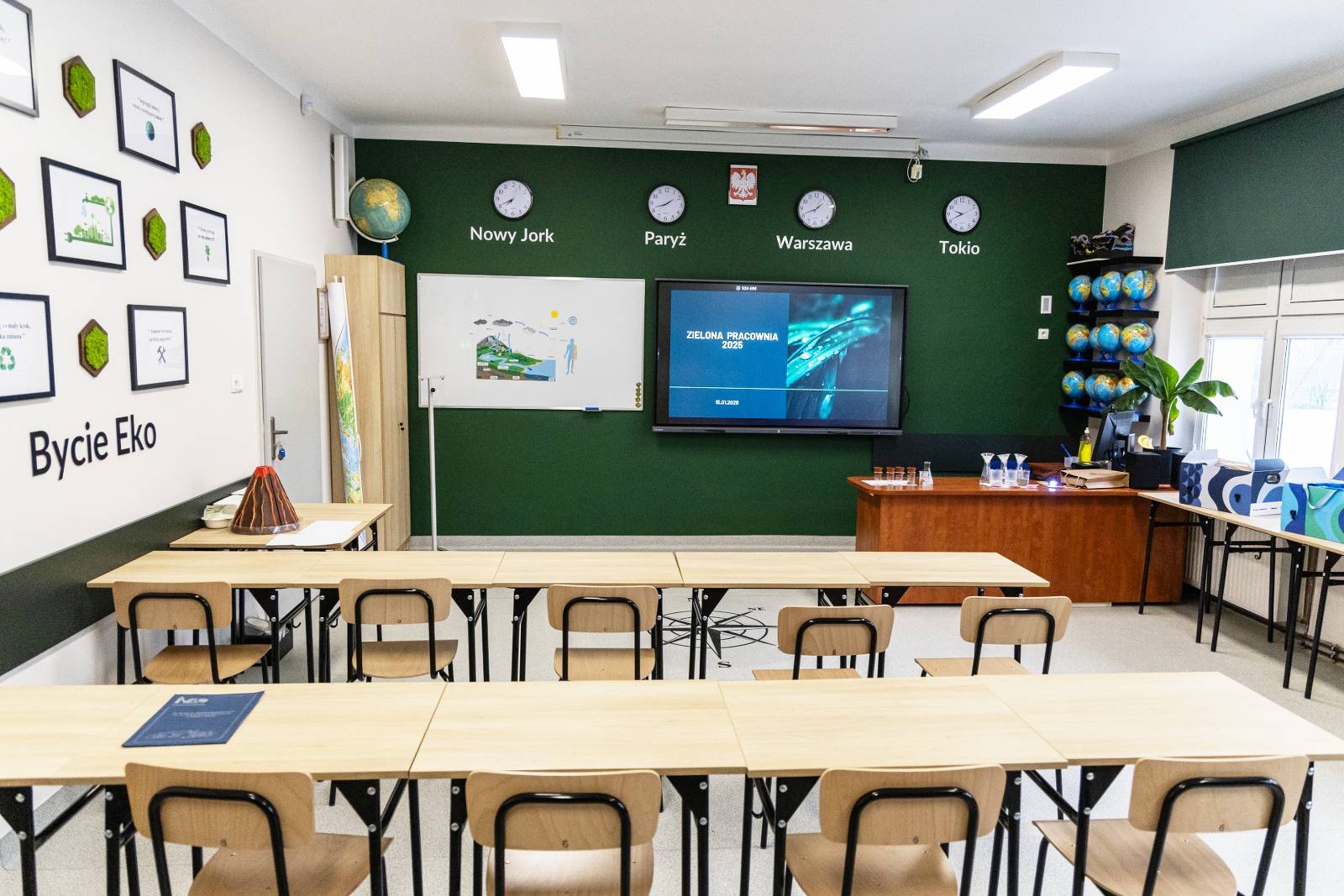 Zieloną Pracownię oficjalnie otwarto 15 stycznia. Sala powstała w ramach projektu „Zielona Pracownia – Ziemia w naszych rękach – poznaj, zrozum, zmieniaj!”. Projekt został zrealizowany w ramach konkursu Wojewódzkiego Funduszu Ochrony Środowiska i Gospodarki Wodnej w Katowicach i miał na celu utworzenie nowoczesnej pracowni przyrodniczej wspierającej edukację ekologiczną uczniów.