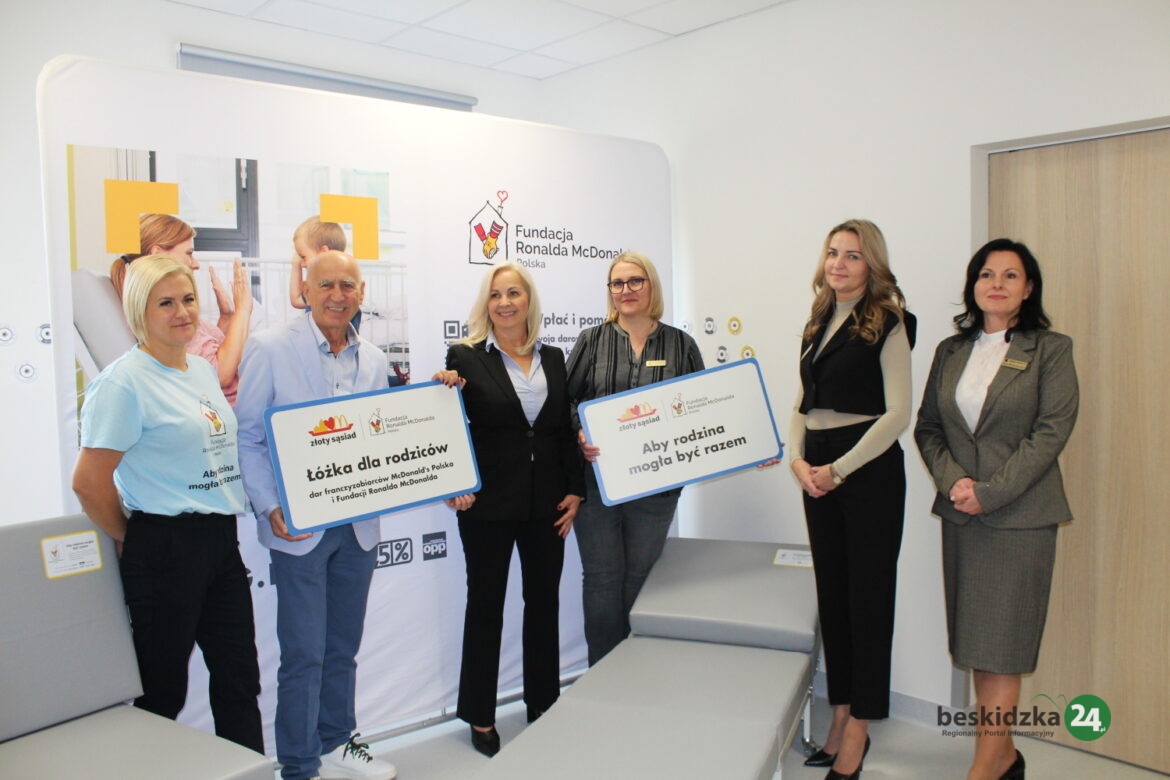Fundacja Ronalda McDonalda w ramach misji o nazwie „Aby rodzina mogła być razem” od 2015 roku przekazuje szpitalom w całym kraju łóżka dla rodziców czuwających przy dzieciach podczas hospitalizacji. Dotychczas do medycznych placówek trafiło ich już blisko 600. Szpital Pediatryczny w Bielsku-Białej w 2024 roku otrzymał w ramach tej akcji cztery takie łóżka, teraz kolejne dziewięć. Będą służyć w oddziałach zachowawczych i zabiegowych. Ufundowali je franczyzobiorcy McDonald’s: Ewa Dziedzic oraz Andrzej Maziarz. – Przekazane łóżka do szpitala w Bielsku-Białej pozwalają rodzicom hospitalizowanych dzieci odpocząć w godnych warunkach. Cieszę się, że mogę być częścią tej akcji i wpływać pozytywnie na warunki w szpitalach – mówi Andrzej Maziarz.