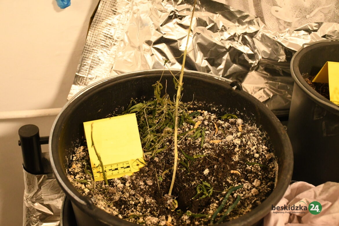 Podczas przeszukania mieszkania policjanci odnaleźli schowany pod łóżkiem telefon komórkowy. Natomiast w jednym z pokoi ujawnili susz roślinny oraz kilka donic z łodygami konopi. Susz został zabezpieczony dalszej ekspertyzy.