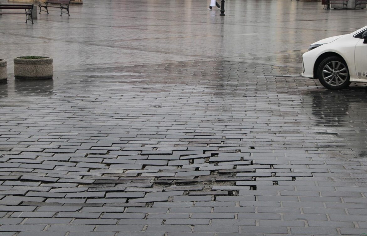 Wielokrotnie poprawiana kostka na Rynku w Żywcu wciąż ulega zniszczeniu, a miejscami się zapada. Czy to fuszerka? Burmistrz Żywca Antoni Szlagor przyznaje, że dzieje się tam coś dziwnego.