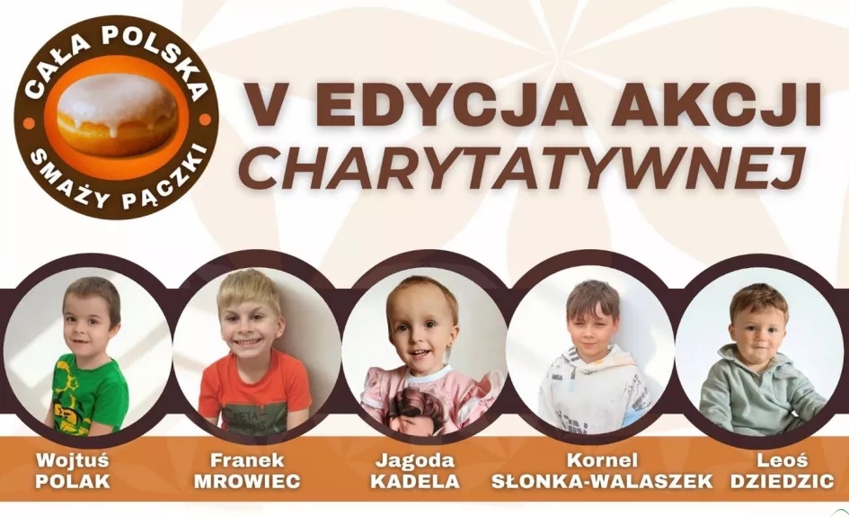 Trwa 5. edycja ogólnopolskiej akcji charytatywnej zatytułowanej „Cała Polska smaży pączki”, w ramach której smażone i sprzedawane są pączki, a cały dochód z ich sprzedaży przeznaczany jest na pomoc chorym dzieciom. W tegorocznej odsłonie akcji, organizowanej przez Fundację Serca dla Maluszka, środki zbierane są dla pięciu małych bohaterów, którzy dzielnie walczą ze swoimi chorobami. Wśród nich jest także Leoś Dziedzic – mieszkaniec gminy Goleszów.
