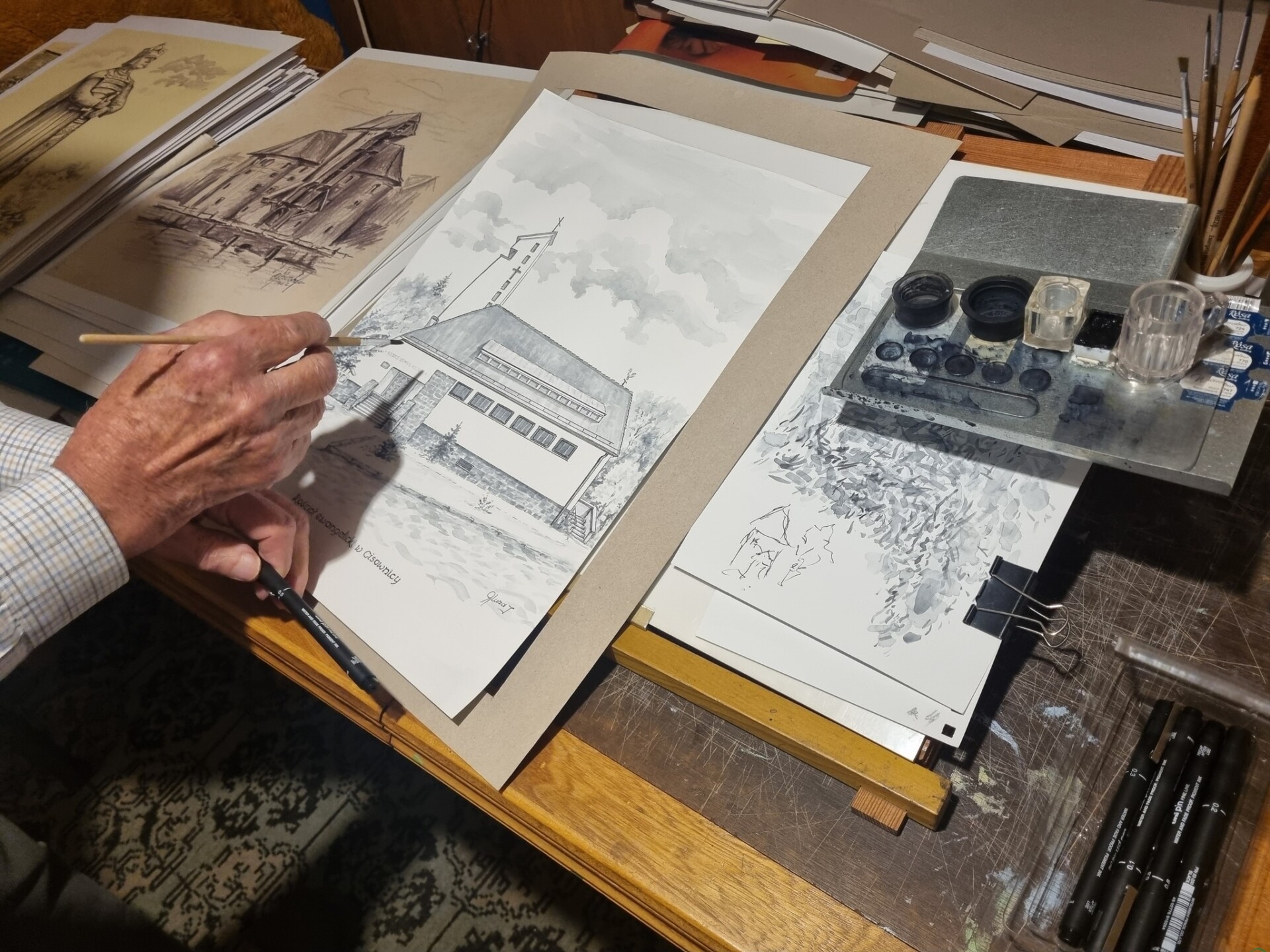 – Oj, dużo tego było i jest: obrazy olejne, linoryty, akwarele, prace ołówkiem. Gdy pewien profesor z Gliwic zobaczył moje prace ołówkiem, powiedział, że gdybym chciał studiować na ich uczelni, po pokazaniu tych prac dostałbym się bez egzaminów. Najbardziej zawsze lubiłem malować pejzaże i zabytkową architekturę drewnianą – przyznaje Jan Gluza.