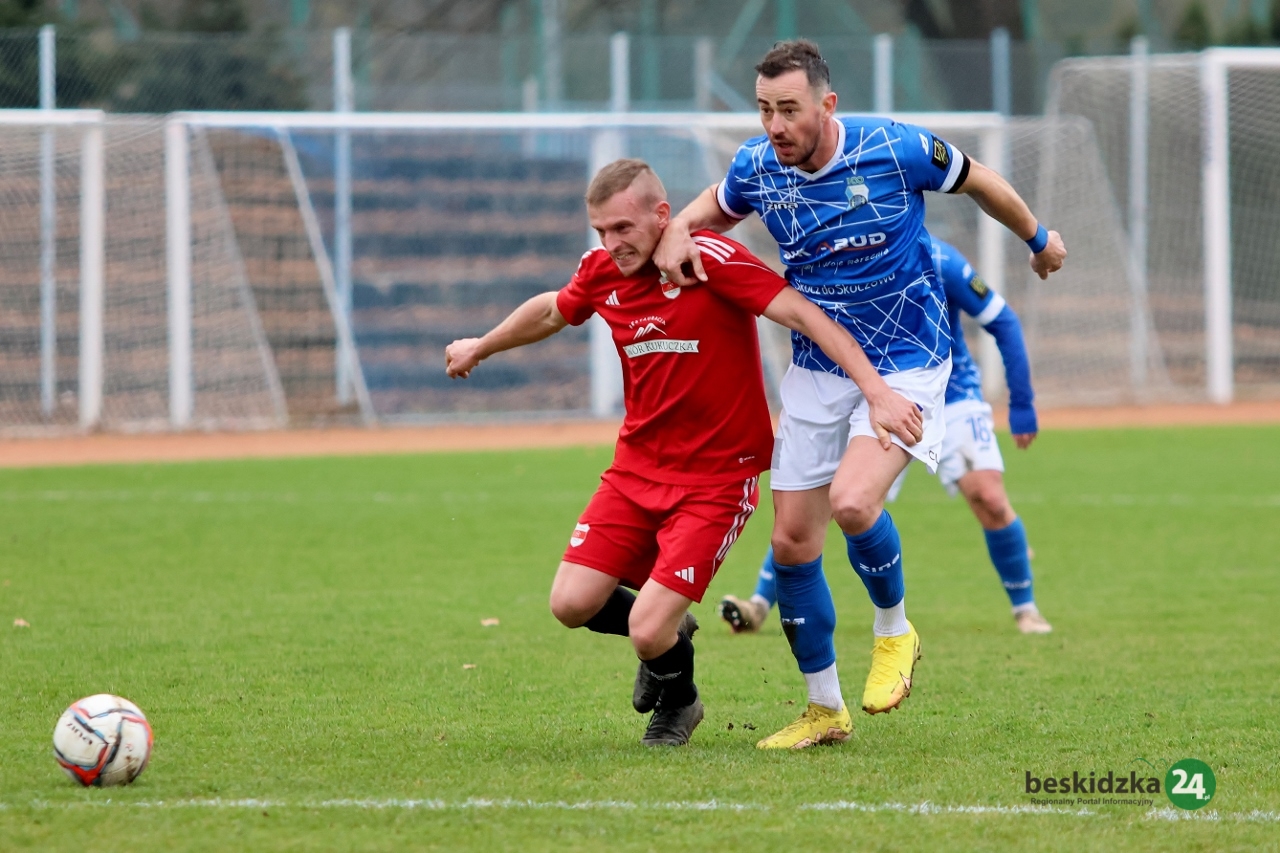 Mecz dla zamykających ligową tabelę gości rozpoczął się fatalnie, bo już w 4. minucie stracili gola po tym, jak próbowali wyekspediować futbolówkę ze swojej strefy obronnej a zamiast tego nastrzelili kapitana Beskidu Kamila Kotrysa, który mógł cieszyć się z przypadkowego trafienia. Przypadku nie było już w 15. minucie, gdy do siatki piłkę mocnym uderzeniem posyłał Wojciech Padło. Ten sam zawodnik w 26. minucie miał już na koncie dublet i stało się jasne, że “Górale” spod Kaplicówki punktów nie wywiozą. Tuż przed przerwą przyjezdnych dobił efektownym strzałem z pierwszej piłki Cezary Ferfecki, zamykając wynik pierwszej połowy na 4:0.