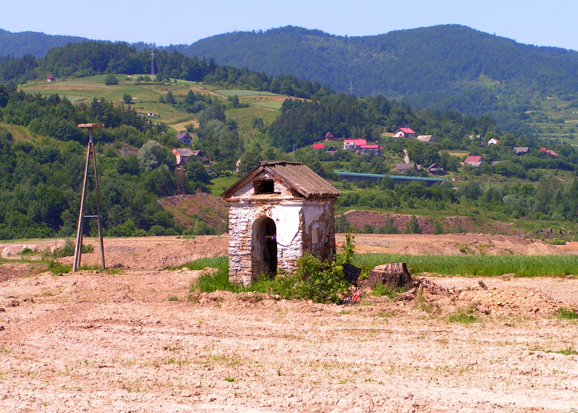 Kamienną kapliczkę z końcem budowy zbiornika przeniesiono na Skawiecką Borowinę.