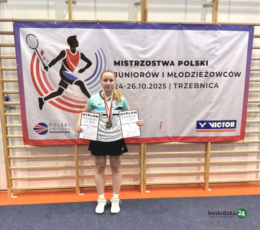 Młoda badmintonistka wywalczyła złoty medal w mikście, grając z Adrianem Krawczykiem (ABRM Warszawa) oraz srebrny medal w grze podwójnej kobiet z Julią Pławecką (UKS Plesbad Pszczyna).