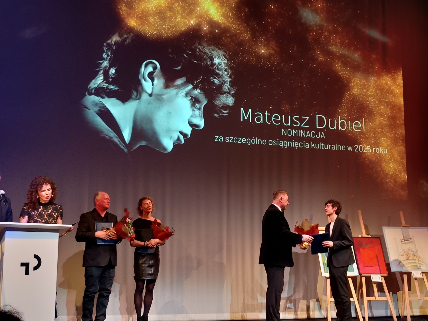 Nominacje za szczególne osiągnięcia kulturalne w 2025 roku uzyskali: artysta malarz, profesor Ernest Zawada, aktorka Teatru Polskiego Anita Jancia, pianista Mateusz Dubiel oraz dyrygent symfoniczny i operowy Paweł Kotla. Nagroda Ikara trafiła do Mateusza Dubiela. O młodym, niezwykle utalentowanym pianiście pisaliśmy już nieraz. 22-letni muzyk to absolwent szkoły średniej w Zespole Państwowych Szkół Muzycznych im. Stanisława Moniuszki w Bielsku-Białej oraz Akademii Muzycznej im. Krzysztofa Pendereckiego w Krakowie. Występuje w salach koncertowych w Europie i na świecie, zachwycając słuchaczy i krytyków talentem i muzyczną wrażliwością. Jest laureatem wielu konkursów pianistycznych. W lutym 2025 otrzymał I Nagrodę w 53. Ogólnopolskim Konkursie Pianistycznym im. Fryderyka Chopina, a w październiku wystąpił w XIX Międzynarodowym Pianistycznym im. Fryderyka Chopina w Warszawie. – To dla mnie wielka duma reprezentować Bielsko-Białą w różnych salach koncertowych. Mówię to szczerze, bo lubię podkreślać, że tutaj się wykształciłem, ukształtowałem i spędziłem pierwsze dwadzieścia lat swojego życia. Dziękuję wszystkim za bardzo miły odzew i przed, i po Konkursie Chopinowskim, bo docierało do mnie bardzo dużo pozytywnych fluidów. A dzisiejsze wyróżnienie jest dla mnie czymś niebywałym – mówił po odebraniu statuetki Mateusz Dubiel.