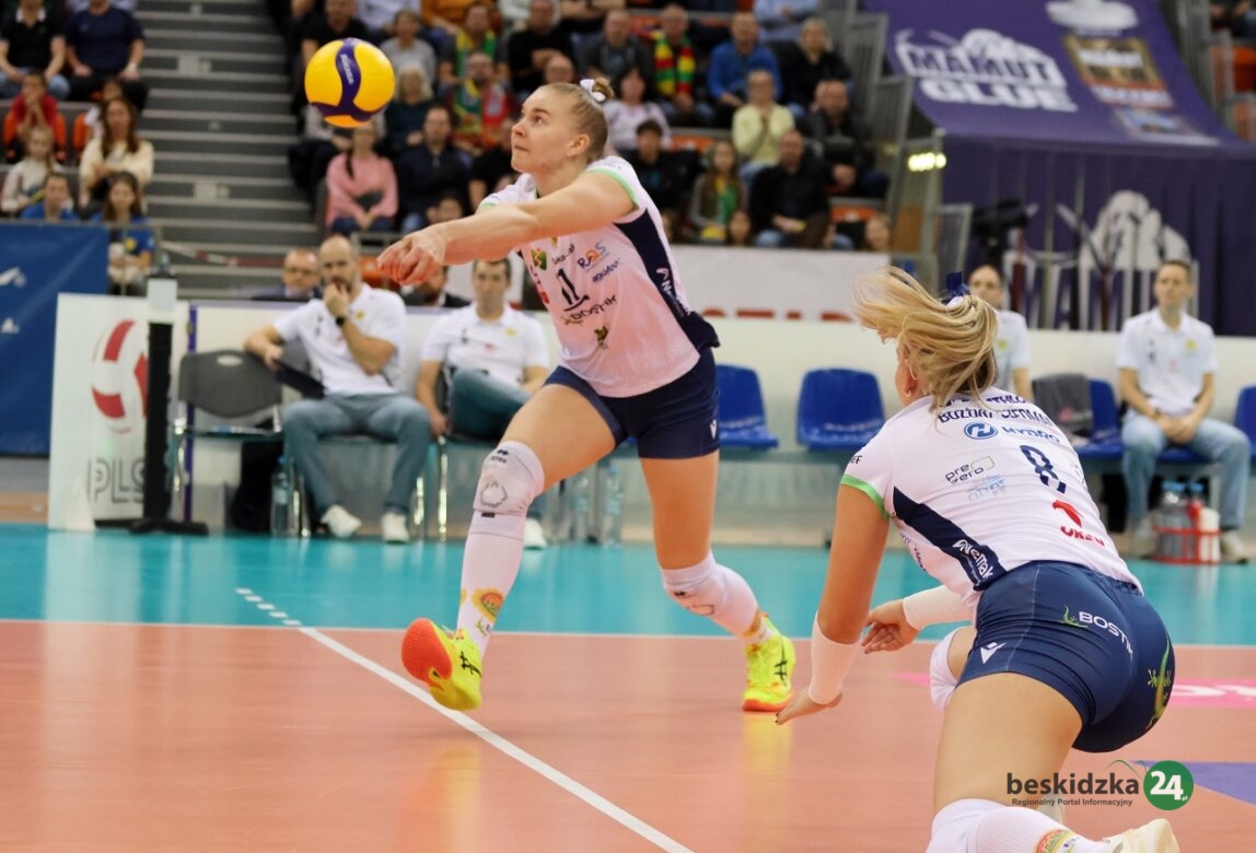 W kolejnej rozgrywce znów nie obyło się bez problemów. Przy prowadzeniu BKS-u 12:9 rywalki zanotowały serię punktów i znów trzeba było gonić wynik. Po doprowadzeniu do remisu nasza drużyna skończyła cztery piłki i odzyskała kontrolę nad boiskowymi wydarzeniami. Wypracowana zaliczka pozwoliła bielszczankom wygrać partię 25:21. Czwarty set, podobnie jak drugi, zaczął się od kilkupunktowego prowadzenia zespołu gości, ale wprowadzenie Kertu Laak zmieniło obraz widowiska. Estonka zanotowała stuprocentową skuteczność w ataku, dzięki czemu BKS przejął inicjatywę, zdobył przewagę i wygrał partię 25:18.