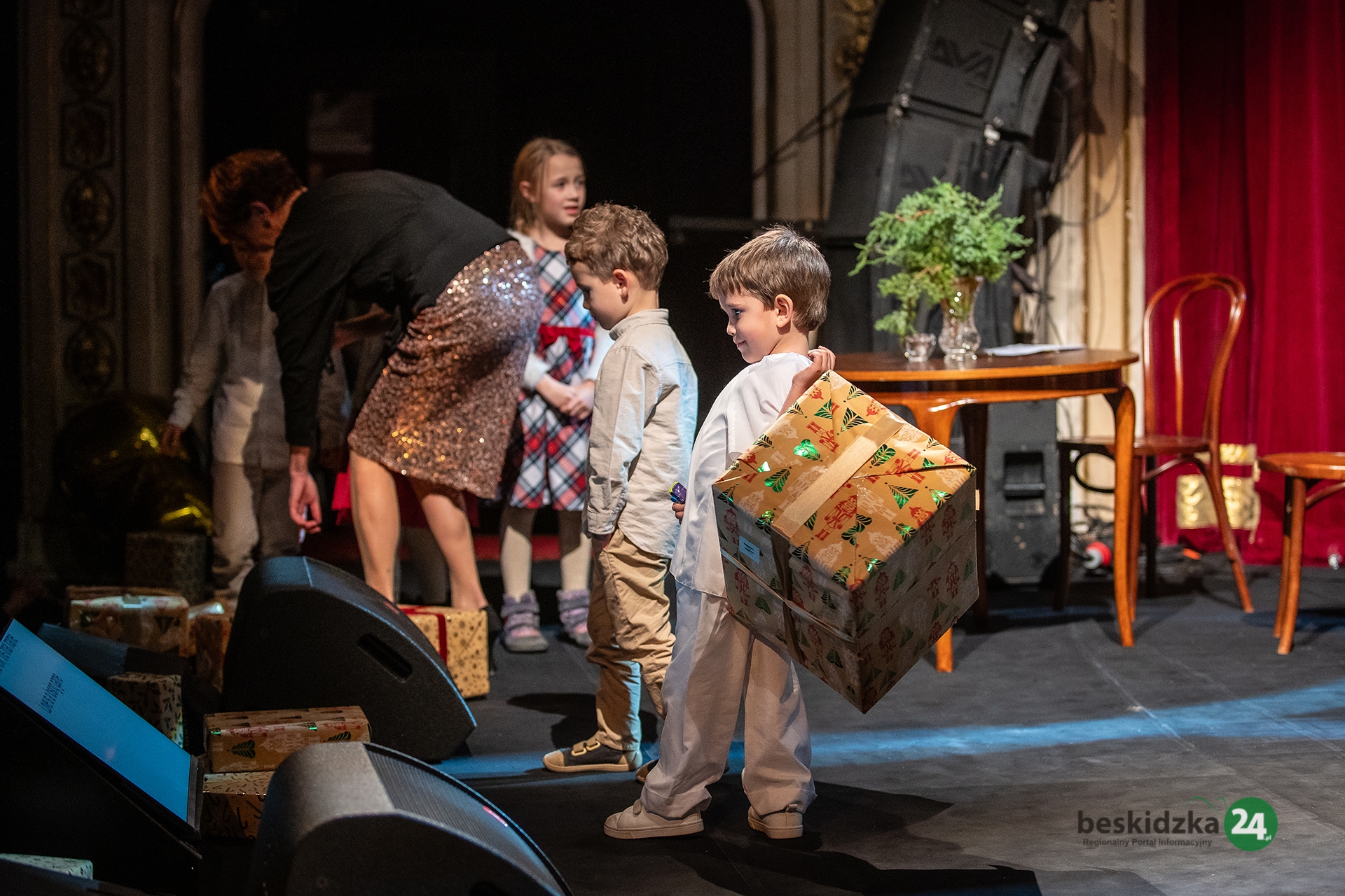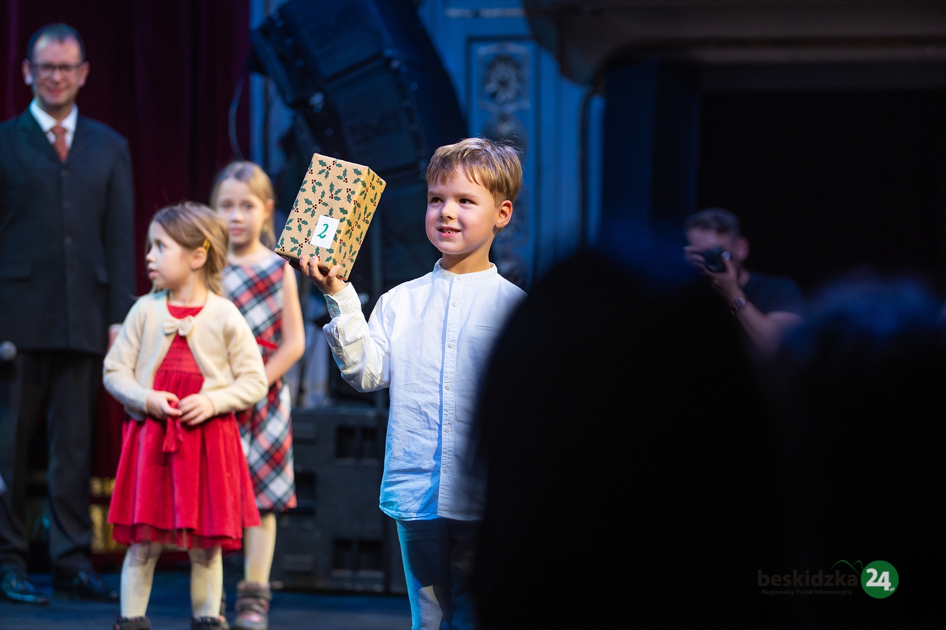 Świąteczny nastrój na scenie podkreśliły pięknie zapakowane prezenty, w których znajdowały się tytuły utworów lub piosenek a paczki losowo wybierały dzieci muzyków.