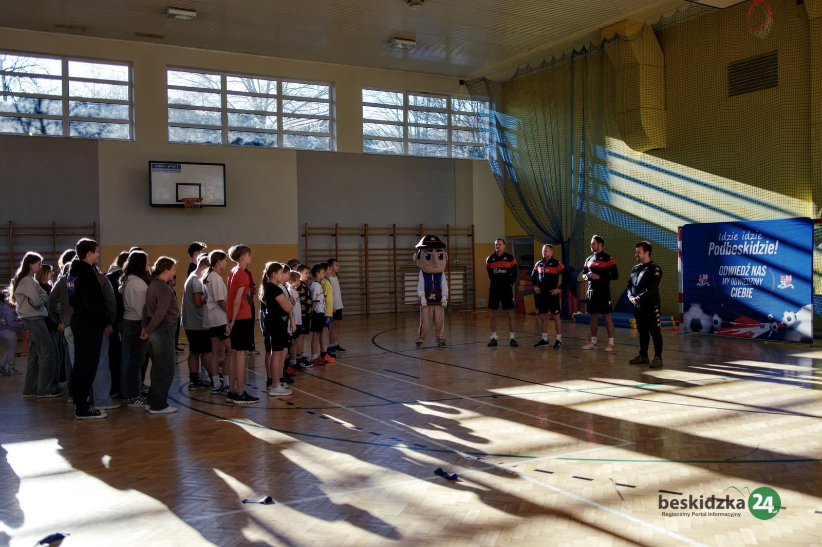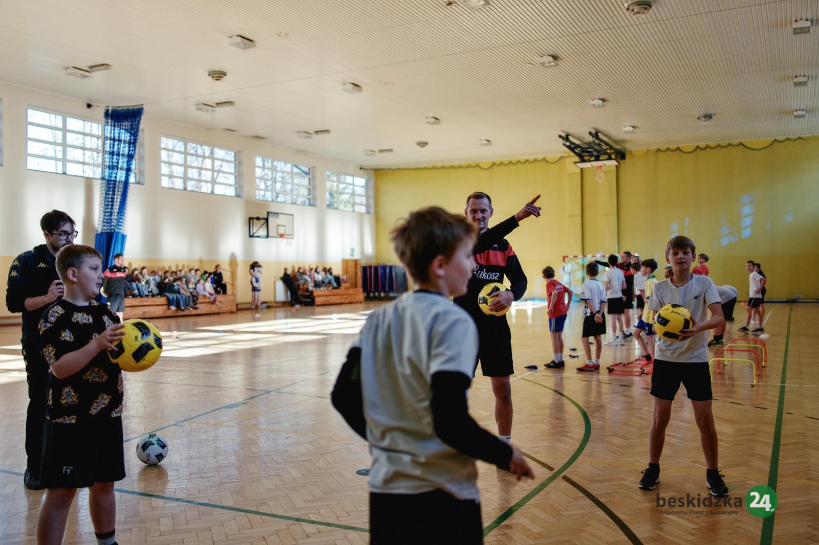 Stąd też do szkoły w Korbielowie zawitali trenerzy i piłkarze Akademii TS Podbeskidzie Bielsko-Biała: Tomasz Górkiewicz, Damian Chmiel i Michal Peškovič, którzy poprowadzili profesjonalny trening dla uczniów.