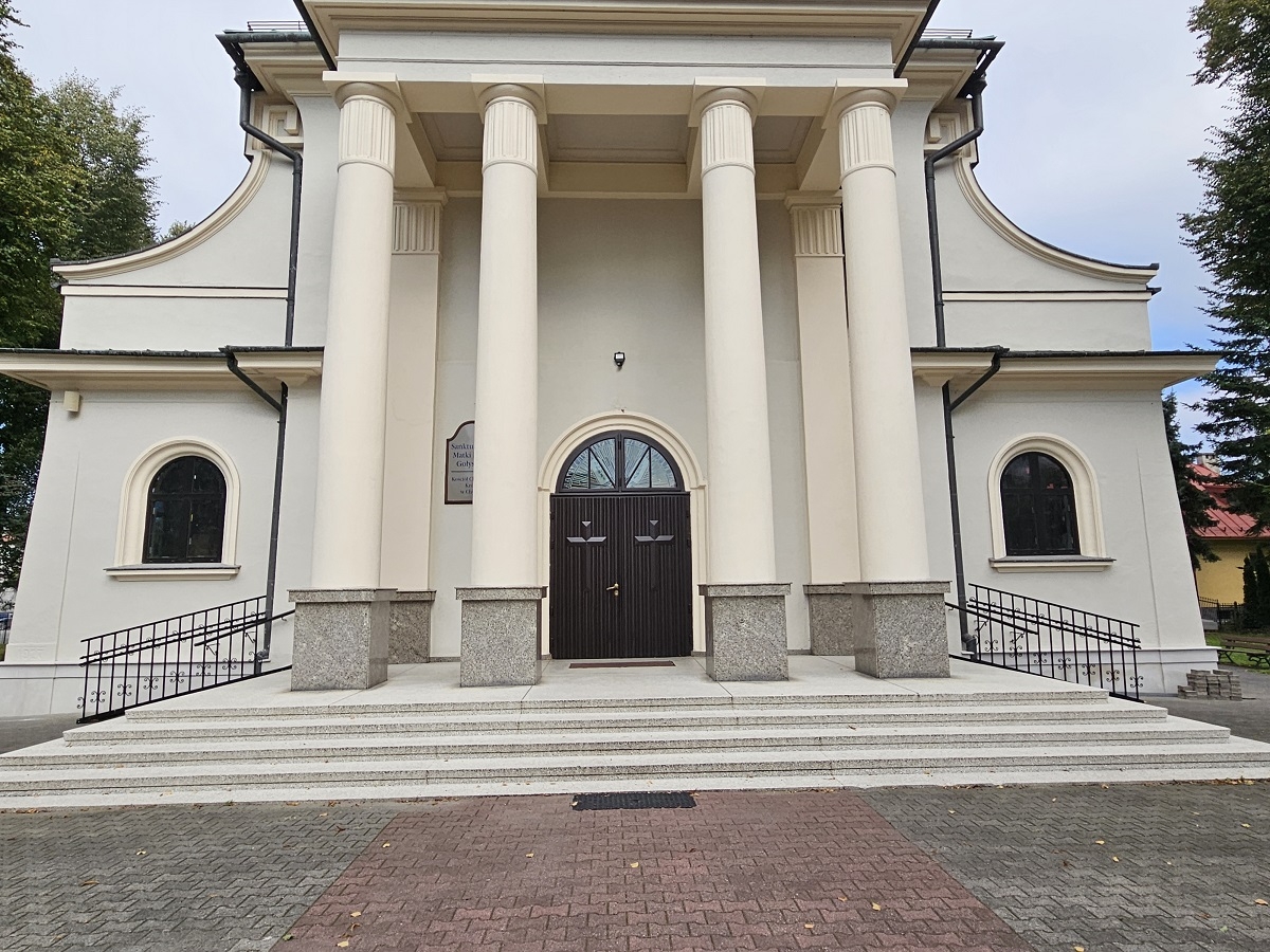 W ramach prac wykonano kompleksową renowację elewacji kościoła – oczyszczenie, naprawę tynków, gruntowanie i malowanie specjalistycznymi farbami, a także odnowiono detale architektoniczne i sztukaterię, które odzyskały dawny blask. Ponadto wykonano nowy kamienny cokół oraz przeprowadzono zabieg hydrofobizacji elewacji, zabezpieczający mury przed działaniem wilgoci. Przy świątyni pojawił się także podjazd z nawierzchni antypoślizgowej, umożliwiający bezpieczny dostęp do wejścia kościoła.