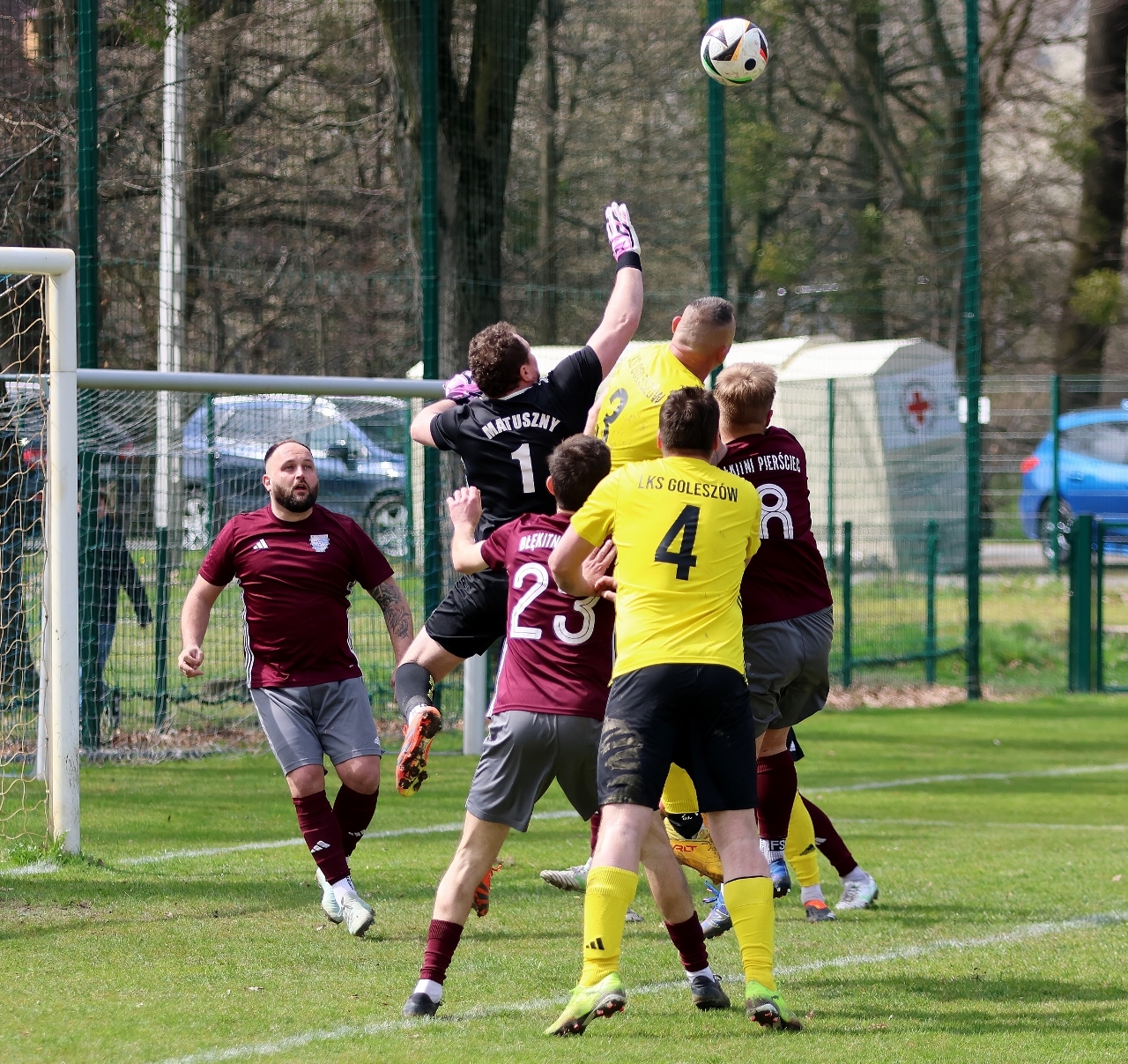 – Spodziewaliśmy się ciężkiego meczu, bo drużyna z Goleszowa naprawdę fajnie gra w piłkę, co dzisiaj potwierdzili. Mecz był wyrównany, nawet nawet bym powiedział, że gdzieś tam rywale stworzyli fajne sytuacje, ale na szczęście ich nie wykorzystali. My z kolei co mieliśmy, to wykorzystaliśmy. Strzeliliśmy więcej bramek od przeciwnika i wygraliśmy, co cieszy. Niektóre mecze po prostu nie da się grać, po prostu trzeba je wygrać. Kolejne zwycięstwa budują w drużynie atmosferę i pewność siebie, więc myślę, że z meczu na mecz ta nasza gra będzie jeszcze lepiej wyglądać – podsumował Mateusz Saltarius, szkoleniowiec Błękitnych Pierściec.