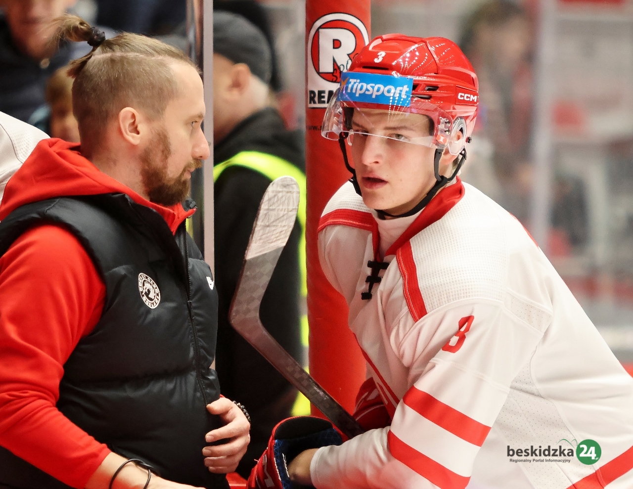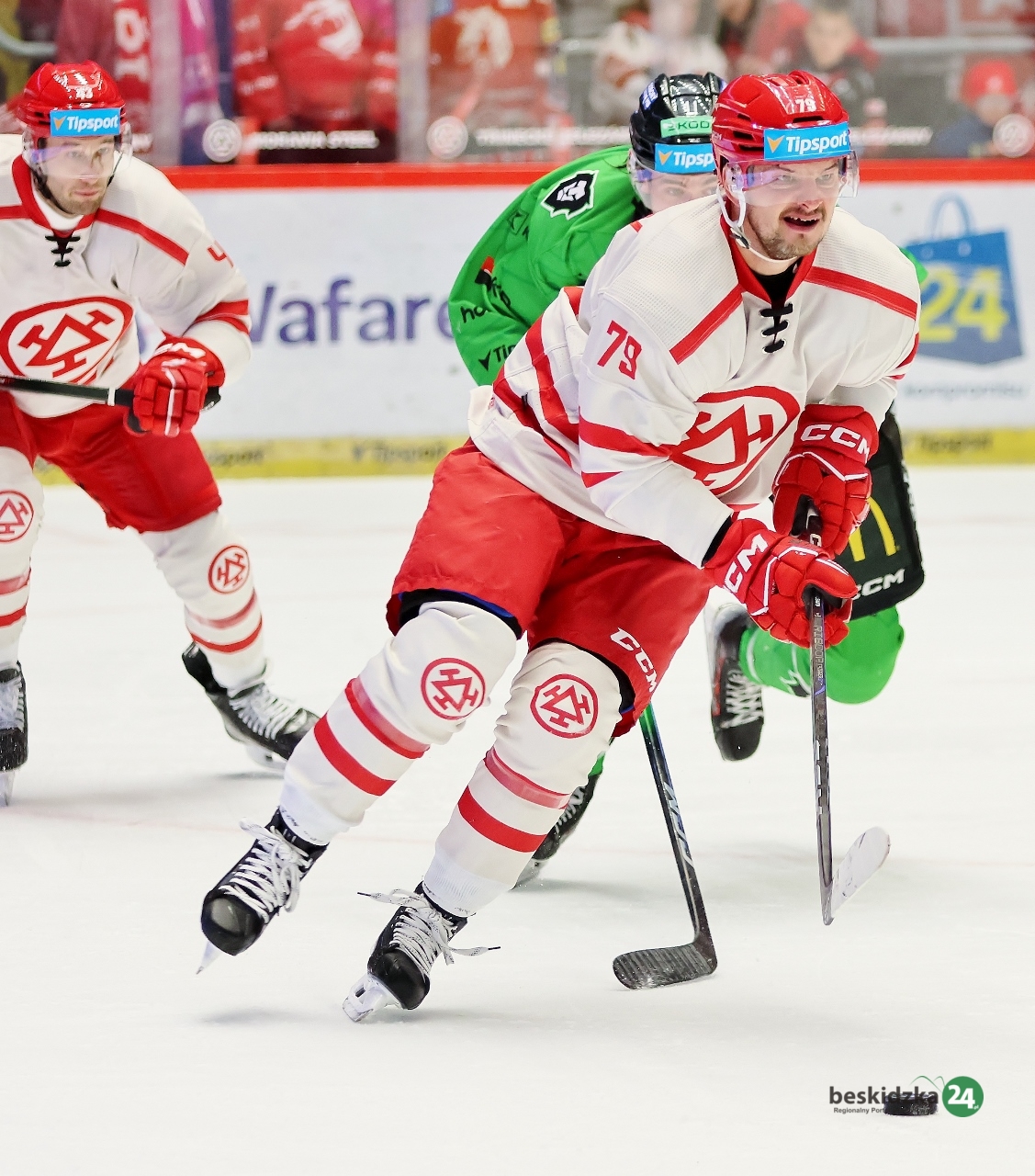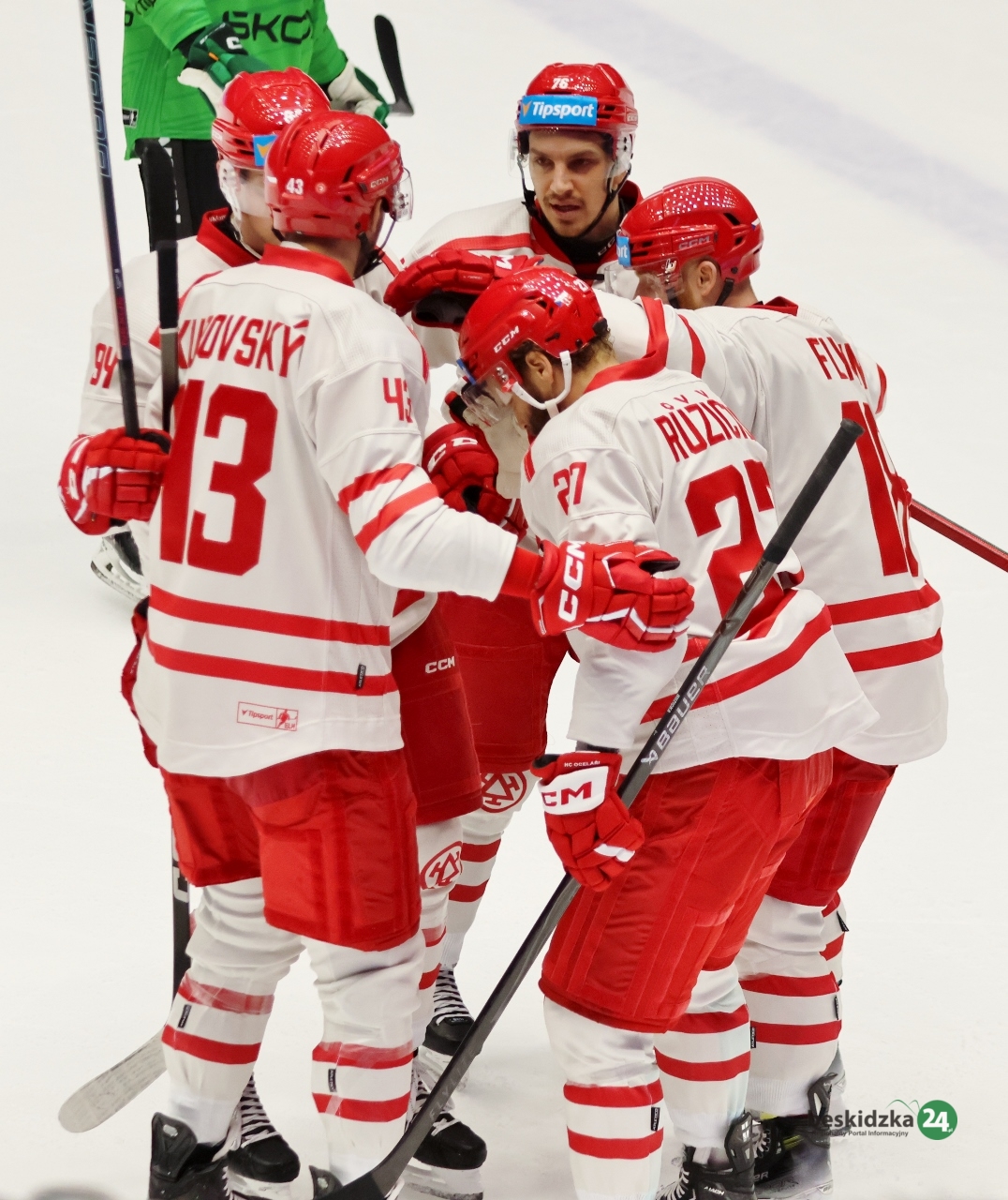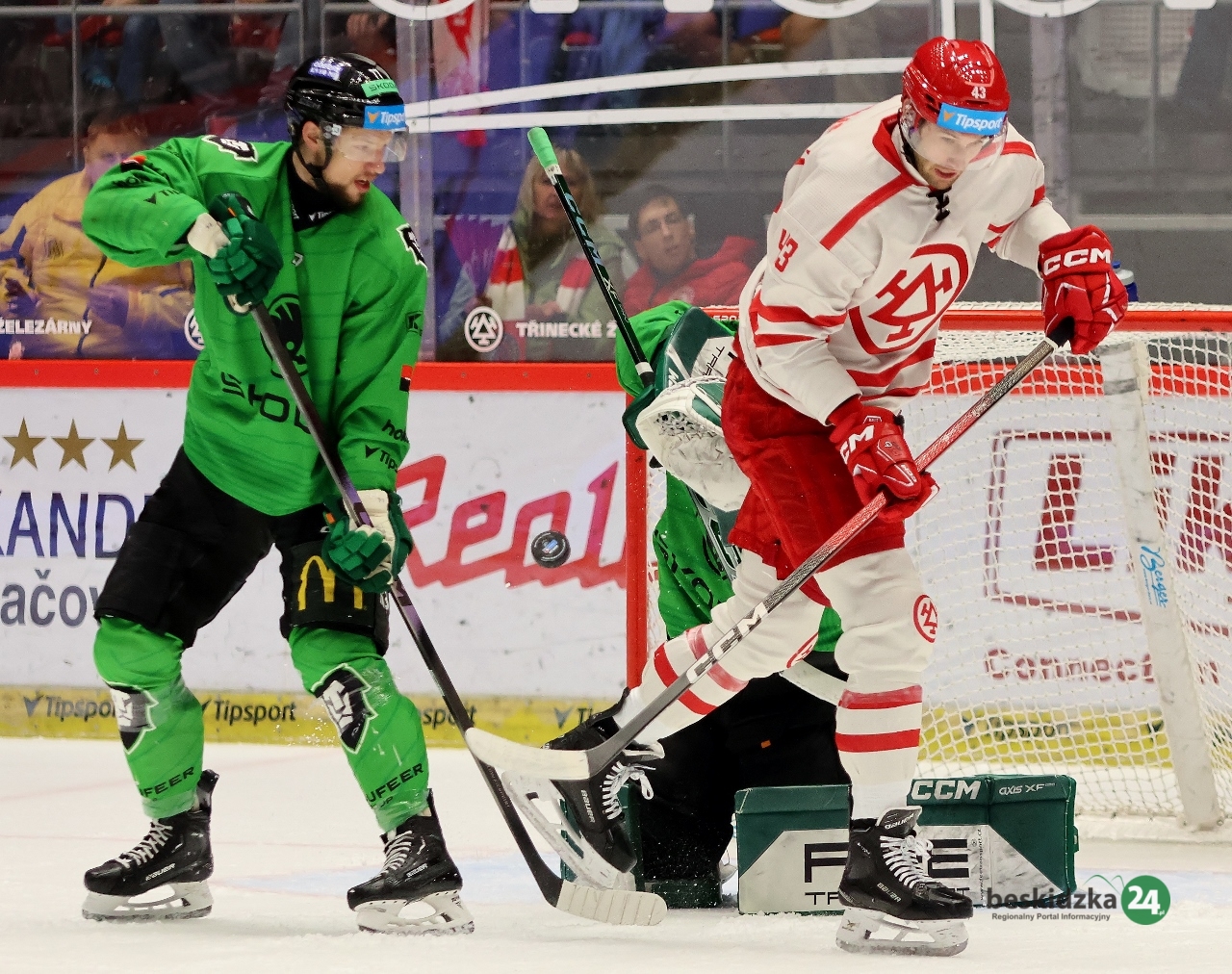 W trzeciej tercji miejscowi dość szybko podwyższyli swoje jednobramkowe prowadzenie. Tym razem w 44. minucie zagranie kapitana czerwono-białych wykorzystał Petr Sikora. Niemal do końca spotkania lider kontrolował to, co dzieje się na lodzie, jednak na 8 sekund przed końcową syreną dał się zaskoczyć gościom, grającym w przewadze po wycofaniu bramkarza. Gola kontaktowego i jak się okazało tylko honorowego strzelił David Gríger, a trzy punkty zostały pod Jaworowym.