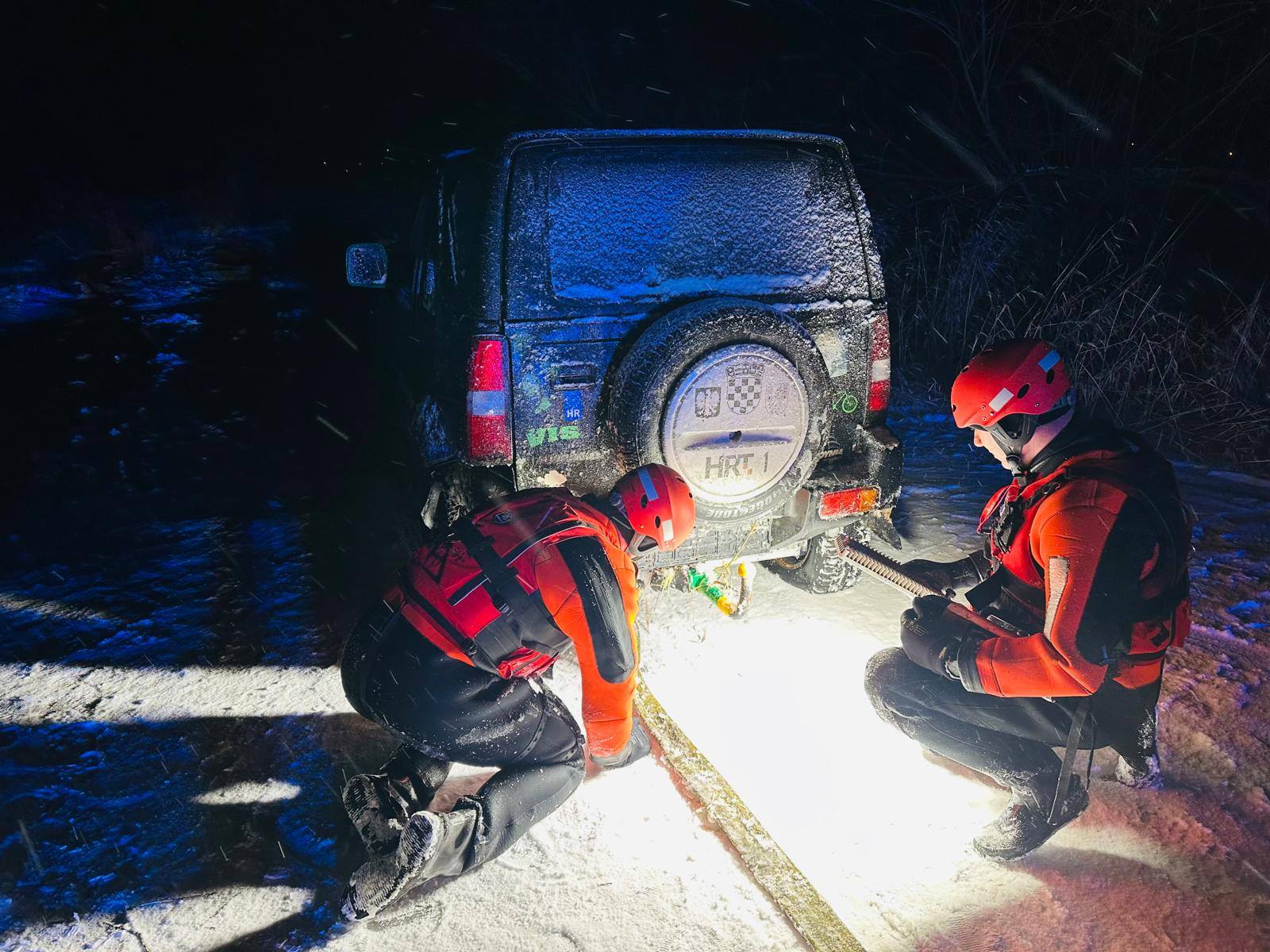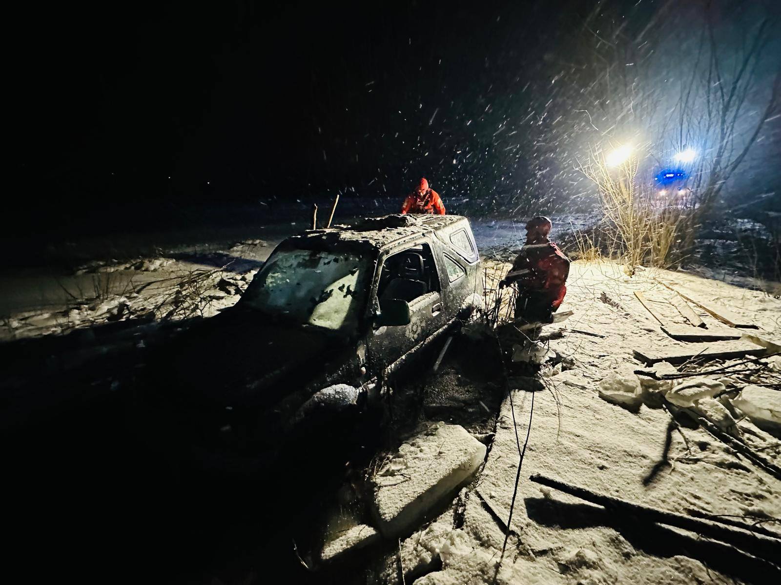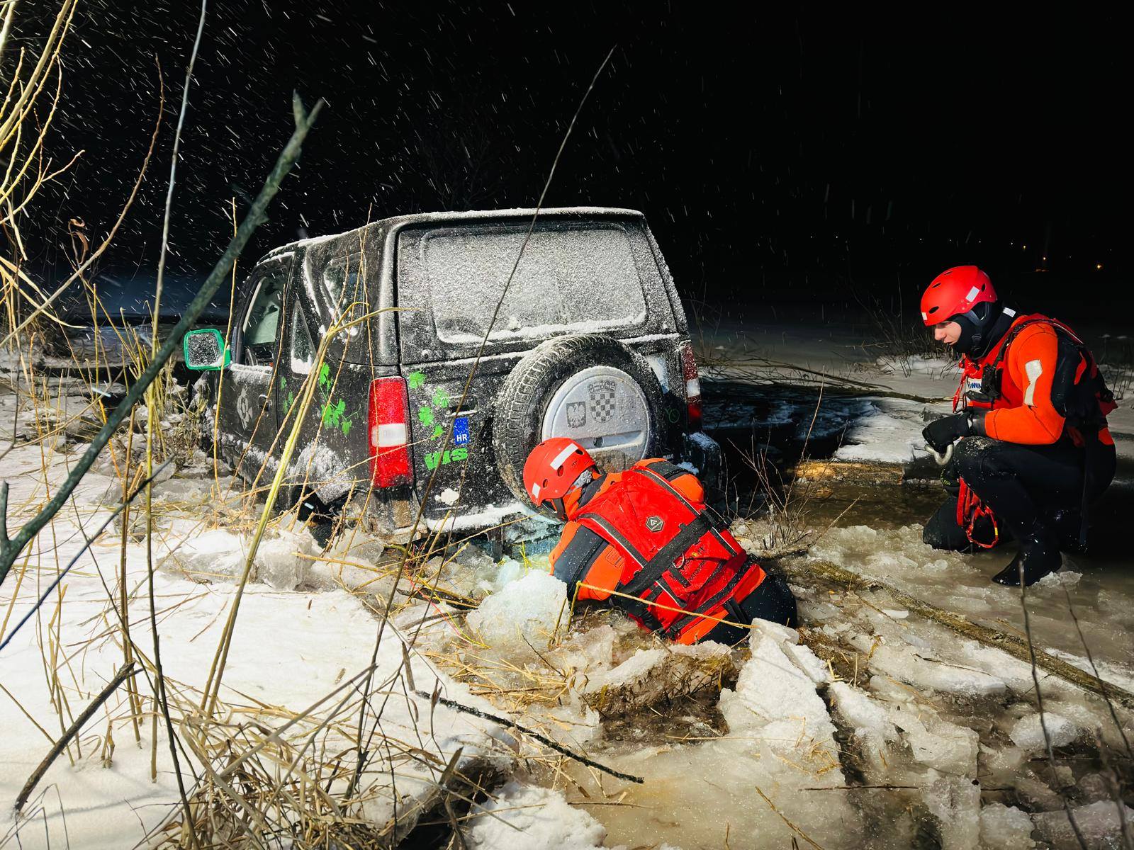 Lód nie wytrzymał. Terenówka utknęła w wodach Jeziora Żywieckiego | ZDJĘCIA