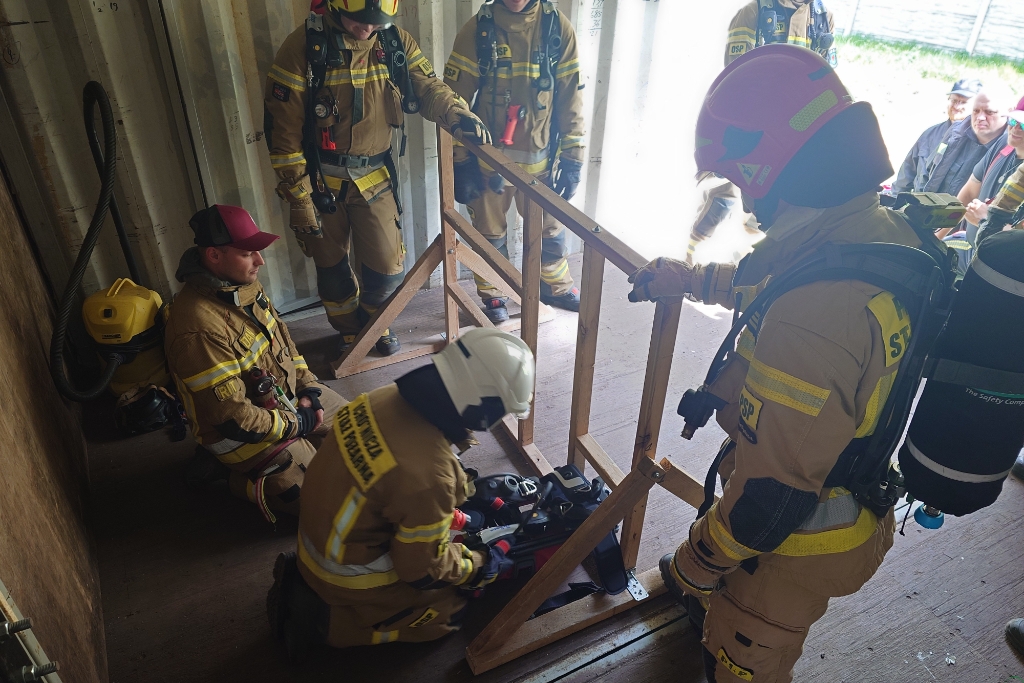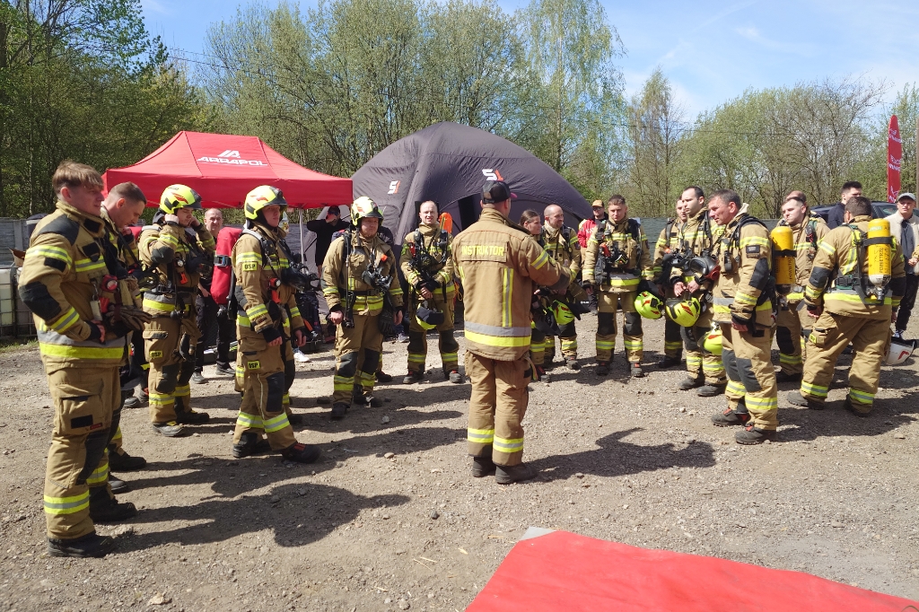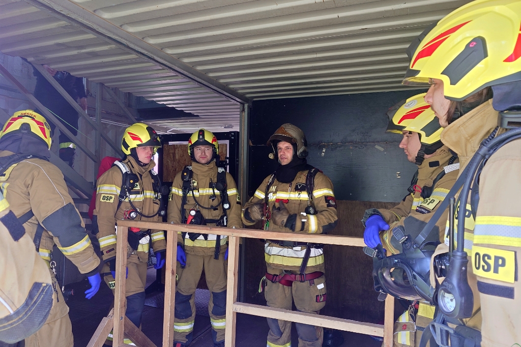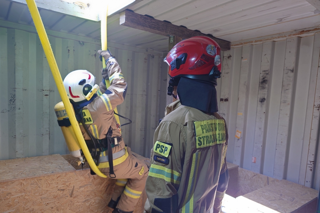 – W tych warsztatach uczestniczą funkcjonariusze PSP oraz OSP. Tematyka opiera się o techniki samodzielnego ratowania, zarządzania powietrzem, a także techniki ewakuacji ratownika, pod którym zawalił się strop i spadł piętro niżej. Uczestnicy będą przeszukiwać z użyciem kamer termowizyjnych zadymione pomieszczenia symulowanego mieszkania. Przygotowaliśmy także scenki pokonywania wąskich otworów i zaplątania w kable i sznurki. Są to warsztaty, nie stawiamy żadnych ocen, celem jest podniesienie wiedzy i umiejętności strażaków. Chcemy przede wszystkim przekazać merytoryczną wiedzę – powiedział nam Daniel Marczewski, instruktor poligonu strażackiego.