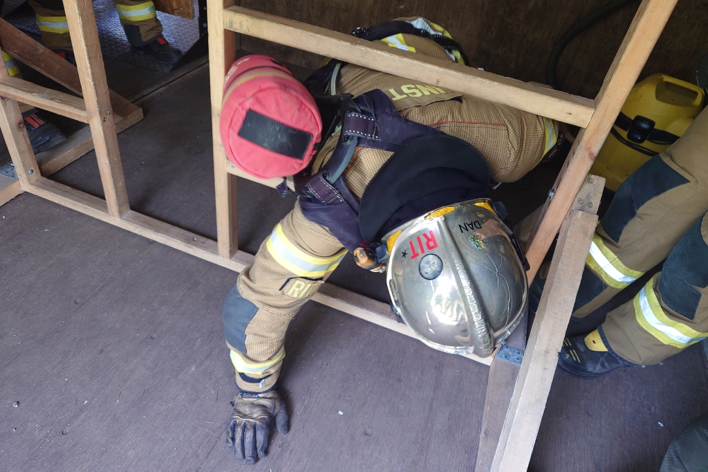 Mając ograniczony zapas powietrza w butli i będąc w zadymionym pomieszczeniu, czasem jedyną drogą ucieczki może być niewielkie okienko. To najmniejsze, które na warsztatach rot RIT miało zaledwie 32 x 32 cm. Czy da się przez takie okienko przejść, mając na sobie mundur bojowy i aparat oddechowy?