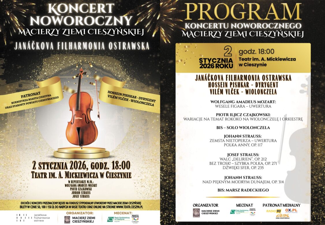 Koncert zaplanowany został na 2 stycznia 2026, godz. 18.00 w Teatrze im. A. Mickiewicza w Cieszynie. Tego wieczoru publiczność przeniesie się do świata klasyki w wykonaniu orkiestry Filharmonii Janáčkovej z Ostrawy pod batutą charyzmatycznego Hosseina Pishkara. Solistą koncertu będzie jeden z najbardziej obiecujących wiolonczelistów młodego pokolenia – Vilém Vlček, którego pełne ekspresji interpretacje zachwycają publiczność w całej Europie.