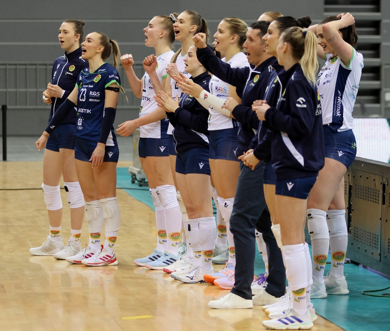 Trzecia partia rozpoczęła się od prowadzenia bielszczanek 3:0. Nasza drużyna nie zwalniała tempa, kontynuując skuteczną grę i utrzymując przewagę nad Słowenkami, a nawet ją podwajając. Przy wyniku 12:5 tylko kataklizm mógł odebrać ekipie spod Klimczoka wygraną. Ten się nie wydarzył, choć był moment przestoju w grze BKS-u, który kosztował utratę kilku oczek. Na szczęście siatkarki z Bielska-Białej odzyskały swój rytm gry na tyle, by utrzymać przewagę punktową do końca tego seta. Ostatecznie wygrały go 25:21, a cały mecz 3:0.