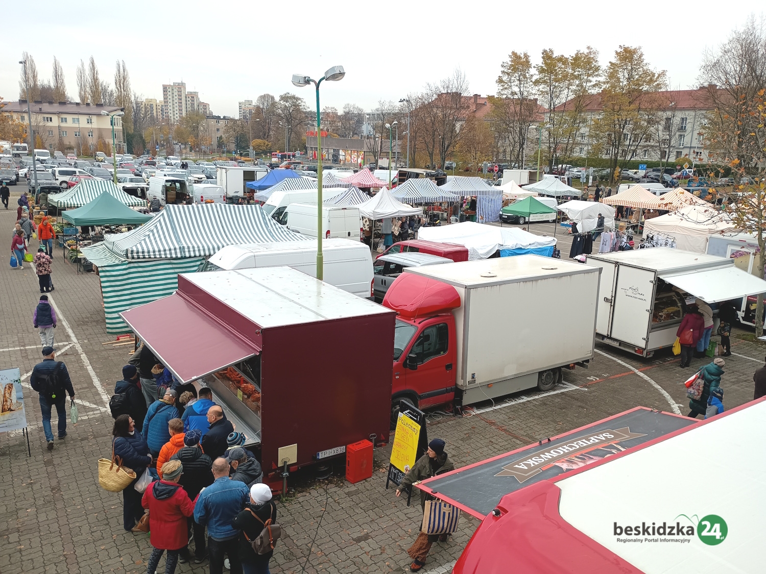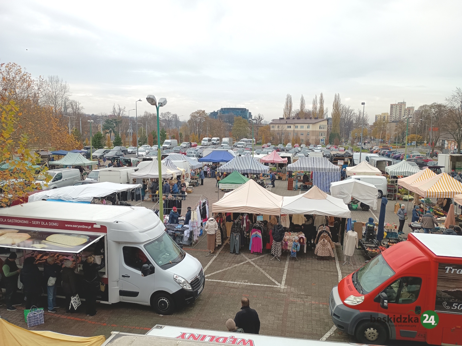 Targowisko przy Broniewskiego działa już od około 25 lat – w czwartki i soboty od godziny 5.00 do około 12.00-13.00. Swojskie, ekologiczne wyroby sprzedają tu głównie lokalni rolnicy i gospodarze. Na placu targowym można kupić głównie produkty spożywcze: warzywa, owoce, mięso, wędliny, pieczywo, nabiał, miód czy orzechy. Są jednak także stoiska z naczyniami, odzieżą, obuwiem czy roślinami. – Stałych producentów, którzy u nas sprzedają, jest około sześćdziesięciu, ale są też handlujący, którzy pojawiają się sporadycznie. Natomiast kupujący to w większości mieszkańcy Bielska-Białej i okolic, na przykład Żywca, ale przyjeżdżają też na przykład Słowacy – mówią przedstawiciele targowiska, podkreślając, że dużym atutem tego miejsca jest sprzedaż wysokiej jakości drobiu.