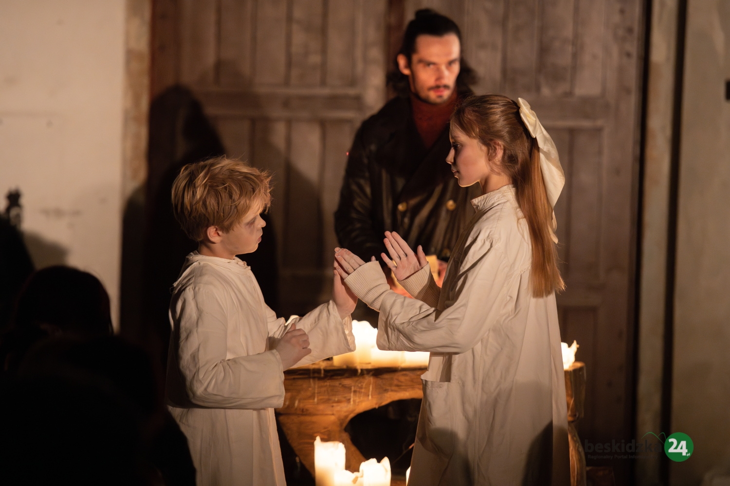 J.N.: Tak, to dla nich naprawdę niezwykłe doświadczenie i duża szansa na rozwój. Natomiast rzecz, która mnie zawsze bardzo rozczula, to kiedy widzę jak dzieci odrabiają w garderobie zadania domowe. Po odegraniu swojego aktu siadają do książek, potem wychodzą na oklaski, znów wracają do matematyki czy polskiego i po raz kolejny wychodzą na swoje kwestie w następnym spektaklu. Trzeba bowiem pamiętać, że gramy w tygodniu – kilka spektakli w ciągu jednego wieczoru. Kończymy często około północy, a te dzieci następnego dnia rano idą do szkoły.