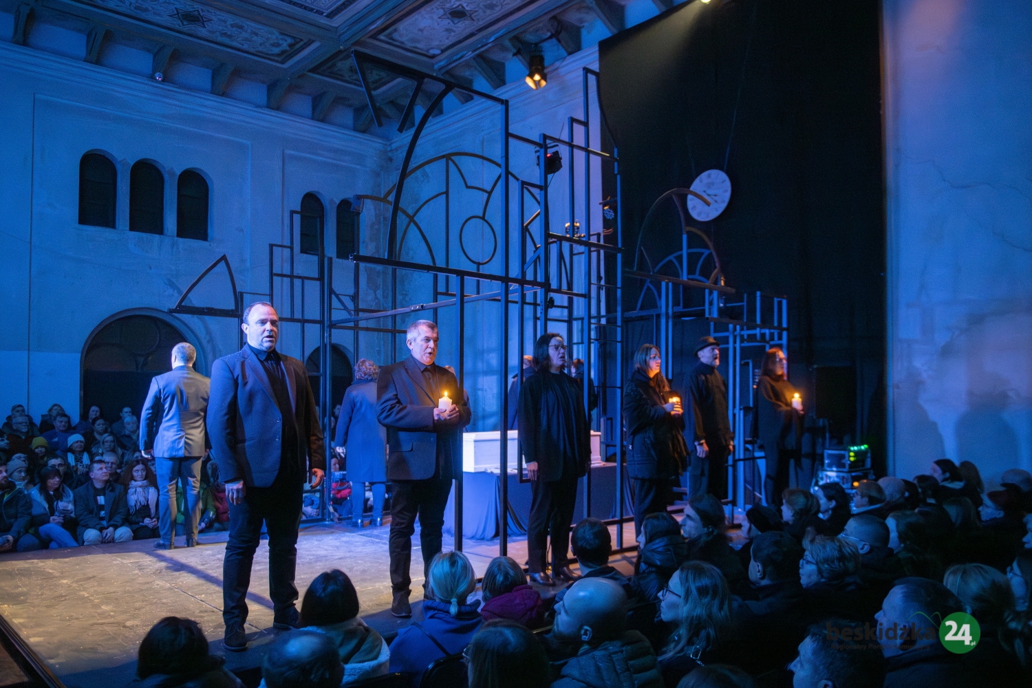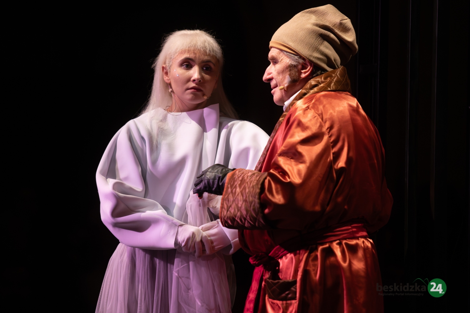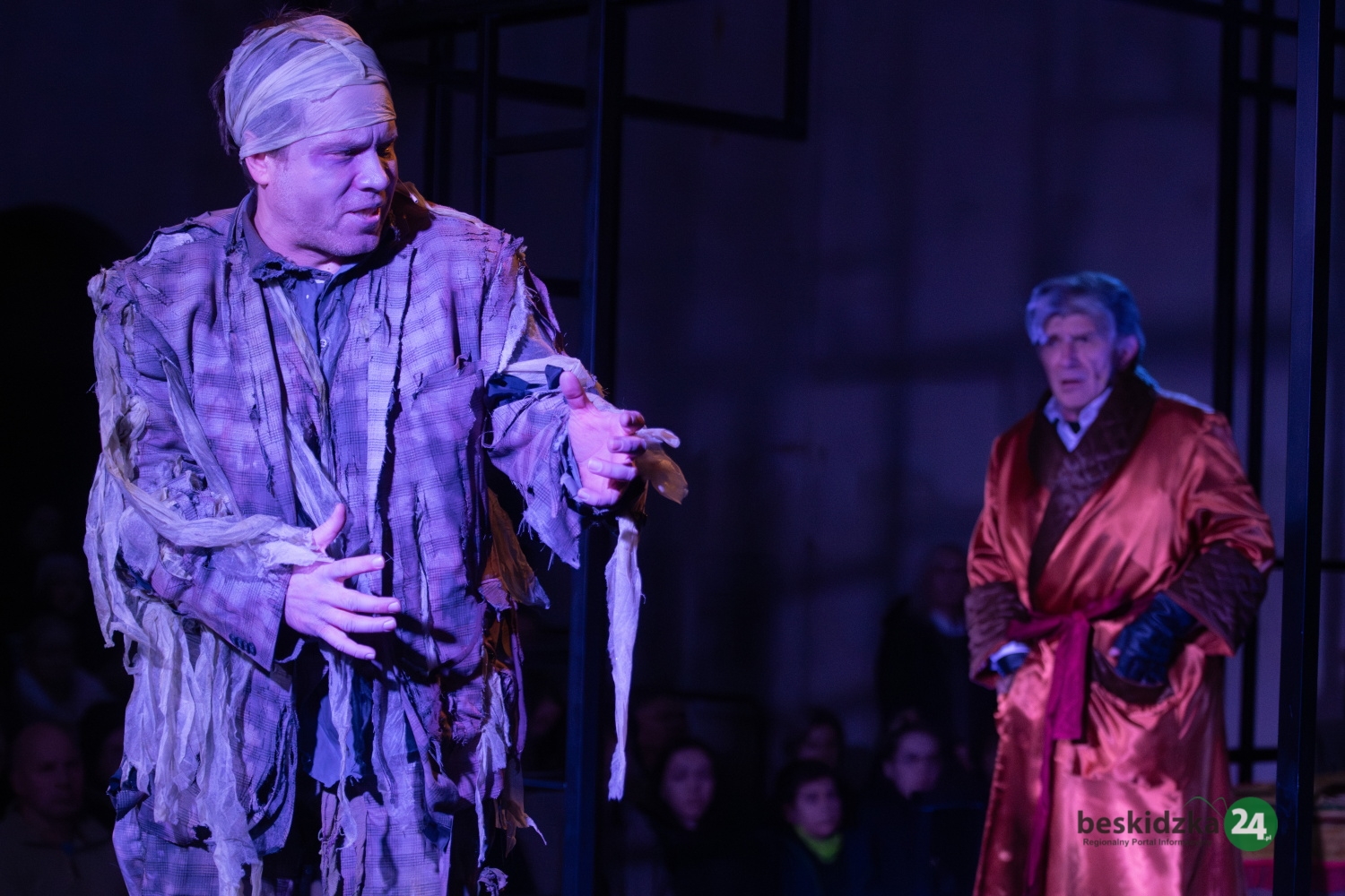 J.N.: Moim zdaniem trudniejsza logistycznie jest „Opowieść wigilijna”. Gra tu więcej artystów, ponieważ oprócz aktorów mamy jeszcze dwanaście osób z Bielskiego Chóru Kameralnego. Przez scenę przewija się zatem w sumie około trzydziestu osób. Zorganizowanie tego wszystkiego na tak niewielkiej przestrzeni i z małym zapleczem jest naprawdę dużym wyzwaniem.