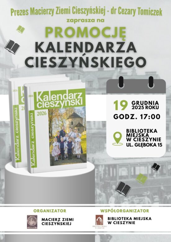 Spotkanie promocyjne „Kalendarza Cieszyńskiego” 2026 odbędzie się w piątek 19 grudnia 2025 r. o godz. 17:00 w Bibliotece Miejskiej w Cieszynie. Jeśli więc ktoś nie ma jeszcze kupionego prezentu pod choinkę, nadarzy się świetna okazja, żeby się w taki zaopatrzyć.