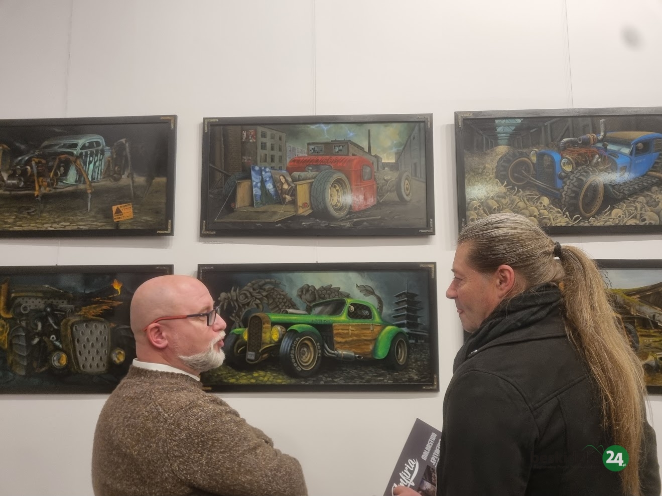 Na ścianach galerii zobaczyć można obrazy, będące ciekawym połączeniem surrealizmu i symbolizmu. Wystawa prezentuje zbiór dzieł, które sama artystka określa mianem realizmu apokaliptycznego, a nazwa całości to „Epitafium przyszłości”. Na płótnach ożywiają ciężkie pojazdy stylizowane na amerykańskie hot rody z lat 40. i 50., osadzone w pejzażach wymarłych na skutek globalnej katastrofy.