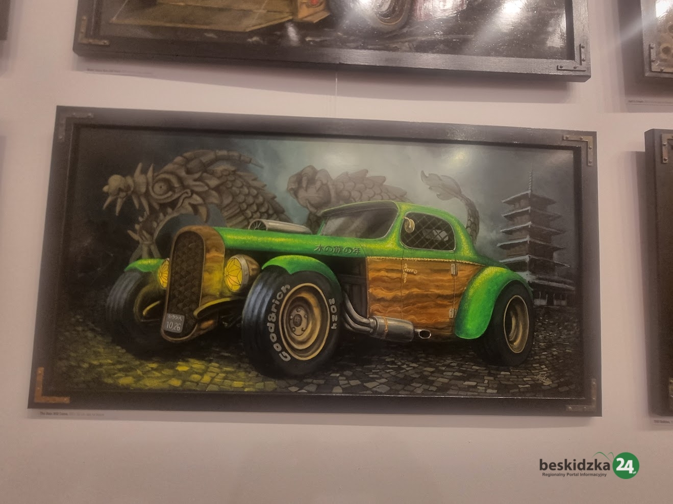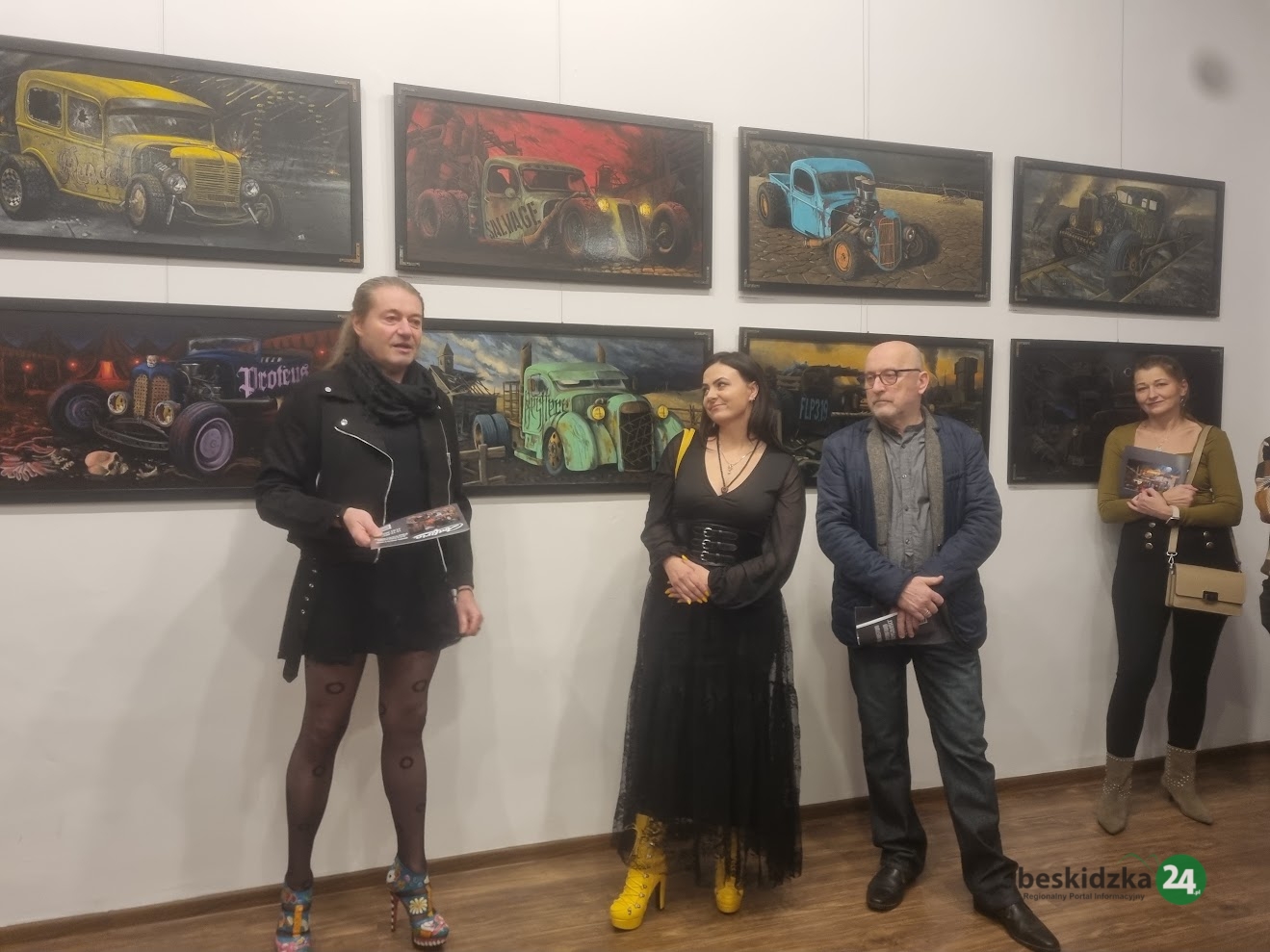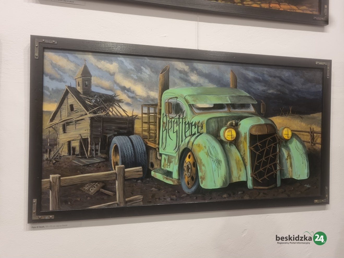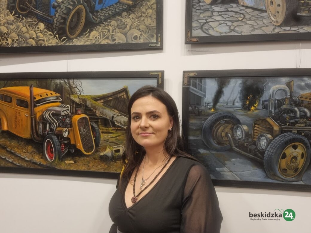 Na ścianach galerii zobaczyć można obrazy, będące ciekawym połączeniem surrealizmu i symbolizmu. Wystawa prezentuje zbiór dzieł, które sama artystka określa mianem realizmu apokaliptycznego, a nazwa całości to „Epitafium przyszłości”. Na płótnach ożywiają ciężkie pojazdy stylizowane na amerykańskie hot rody z lat 40. i 50., osadzone w pejzażach wymarłych na skutek globalnej katastrofy.