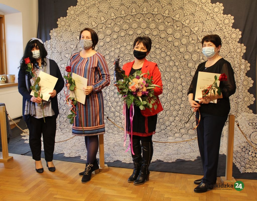 Spotkanie miało kameralny charakter, a ze względów epidemicznych organizatorzy zdecydowali zaprosić tylko laureatki ze Złotej Piątki, członków jury oraz przedstawicieli lokalnych władz. Przypomnijmy, w dziewiątej edycji tego prestiżowego konkursu do Złotej Piątki zakwalifikowały się: Henryka Brańczyk z Pruchnej, Jolanta Heller z Ustronia, Zofia Jagosz-Zarzycka ze Skoczowa, Elżbieta Legierska-Niewiadomska z Koniakowa i Franciszka Probosz z  Istebnej (aktualnie mieszka w Warszawie i nie wzięła udziału w dzisiejszej uroczystości). Sylwetki wszystkich pań prezentowaliśmy na naszym portalu oraz na łamach “Głosu Ziemi Cieszyńskiej”.