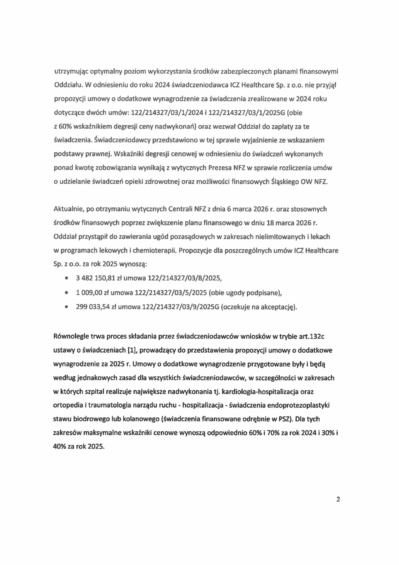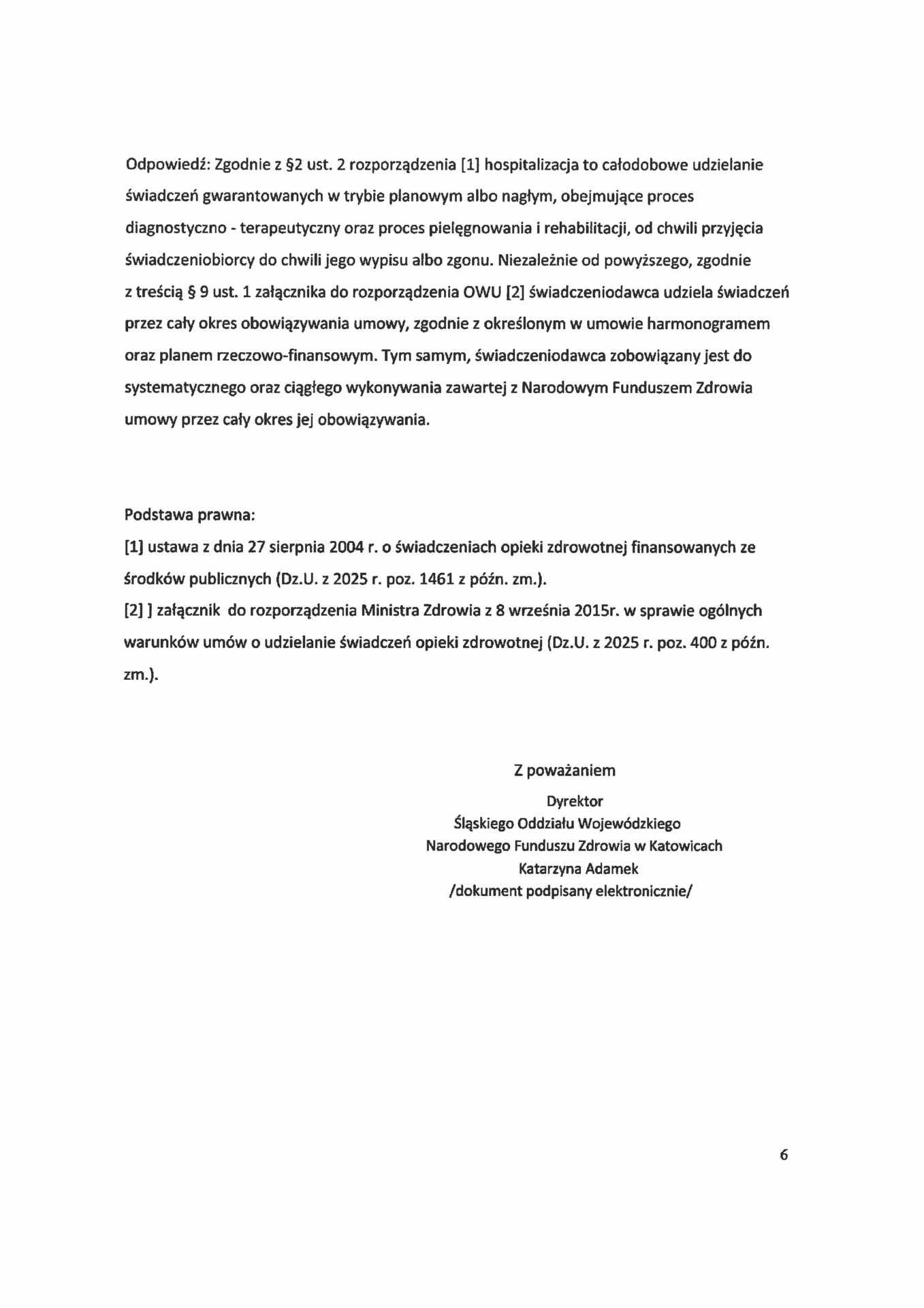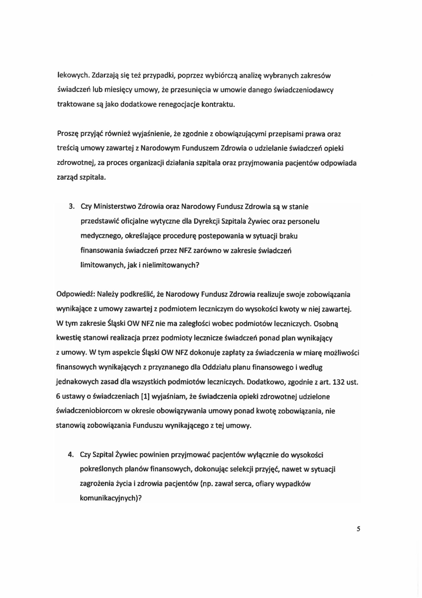 Po kilku tygodniach oczekiwania do władz powiatowych wpłynęła odpowiedź, ale nie od minister, lecz od ŚOW NFZ w Katowicach.