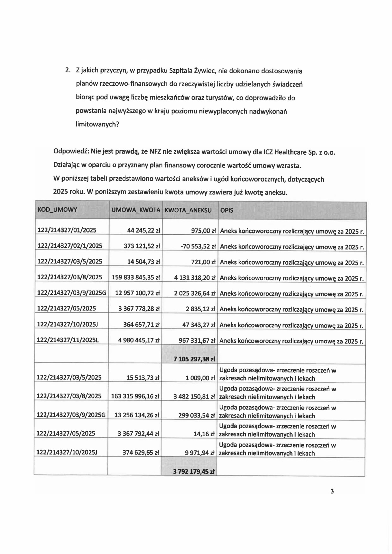 Po kilku tygodniach od wystąpienia Zarządu Powiatu Żywieckiego do minister zdrowia Jolanty Sobierańskiej-Grendy jest w końcu odpowiedź. Jednak nie od minister, jakby można było się tego spodziewać, ale ze Śląskiego Oddziału Wojewódzkiego Narodowego Funduszu Zdrowia w Katowicach.
