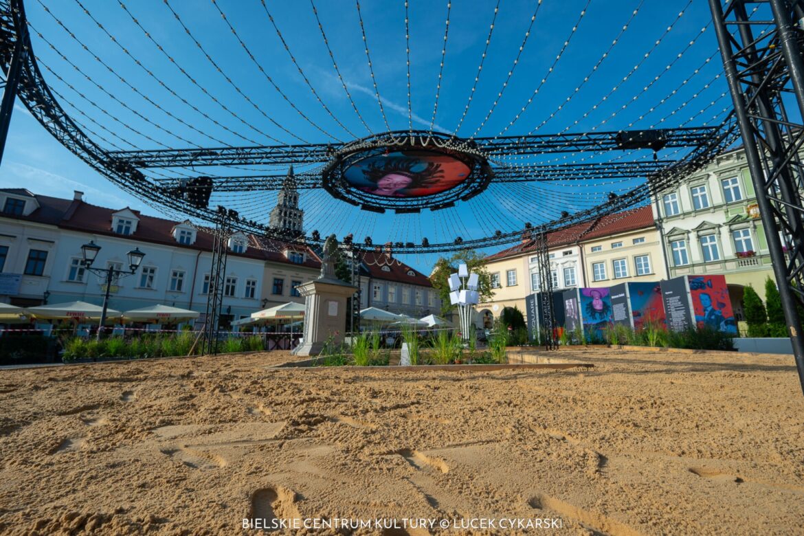 Na bielskim Rynku został wysypany… piasek. Powstaje miejska plaża na Dni Bielska-Białej.