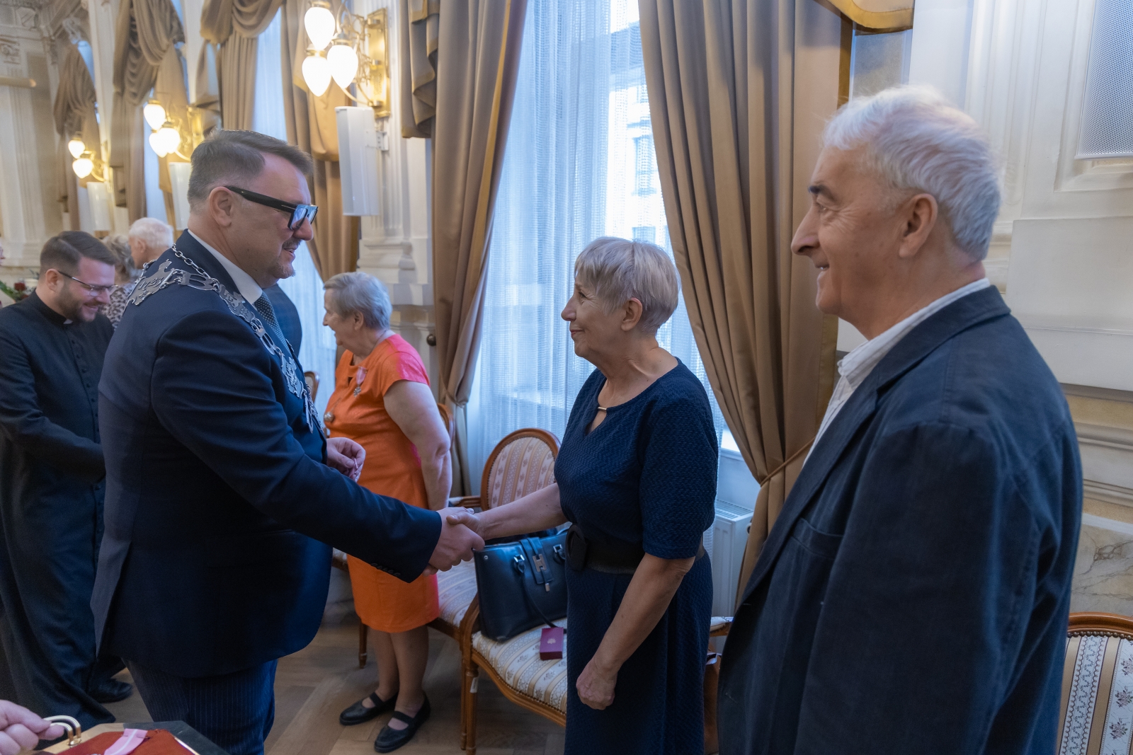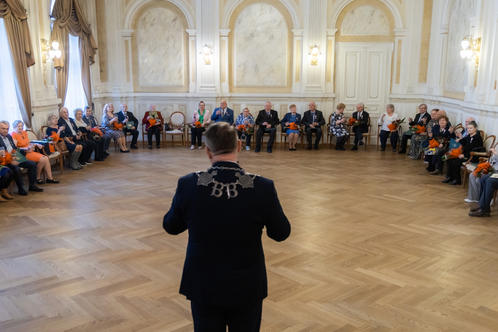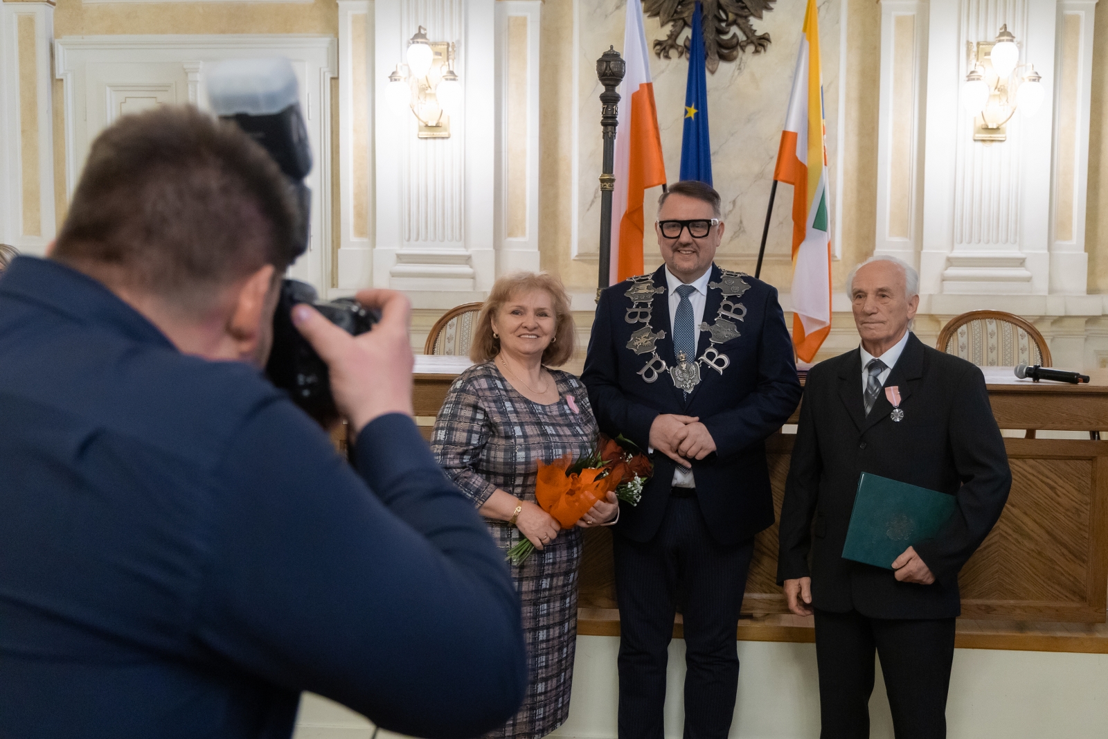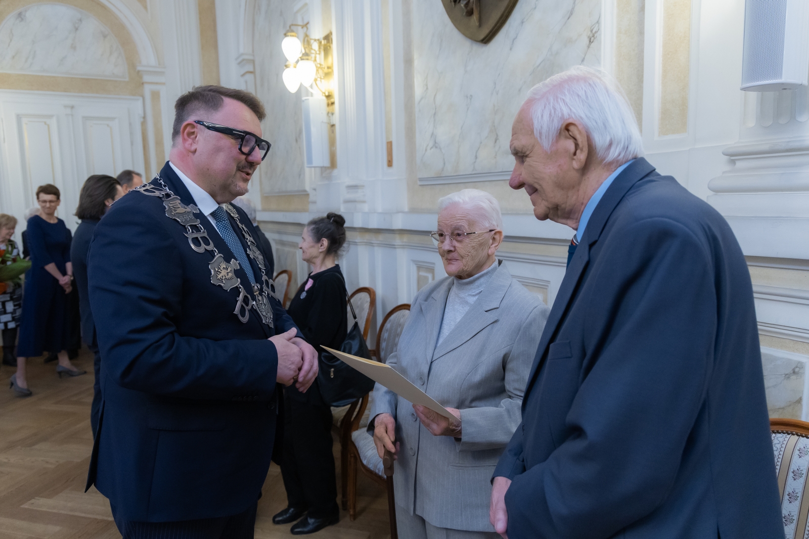 Okazją było wręczenie Medali za Długoletnie Pożycie Małżeńskie przyznanych przez prezydenta RP. Włodarz miasta złożył dostojnym małżonkom gratulacje i życzenia, przekazał również wiązanki kwiatów. Do życzeń przyłączyli się proboszcz parafii ewangelickiej w Białej ks. Robert Augustyn oraz wikariusz parafii Opatrzności Bożej ksiądz Jakub Michalik.